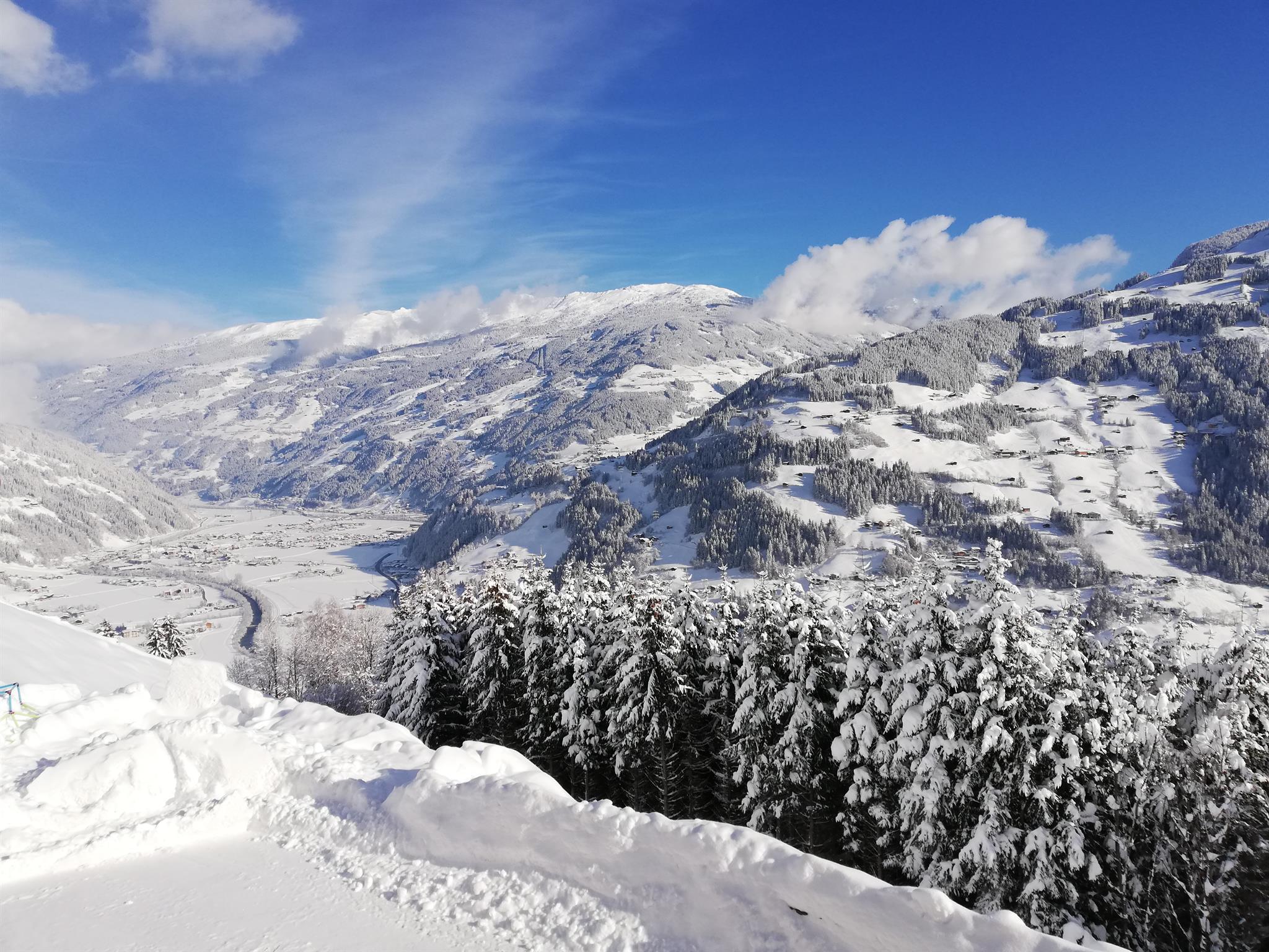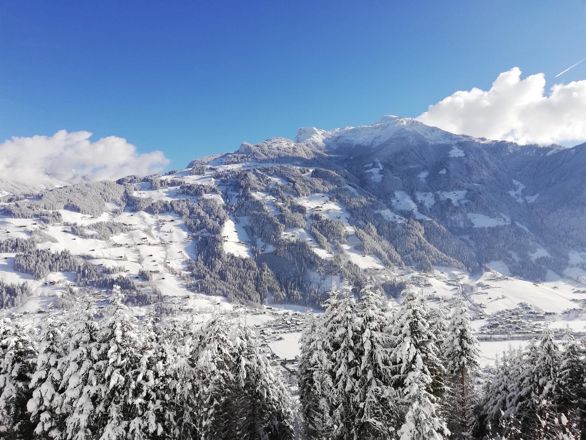 Unser neu erbautes Haus befindet sich am Schwendberg oberhalb von Hippach, Seehöhe ca. 980 Meter.