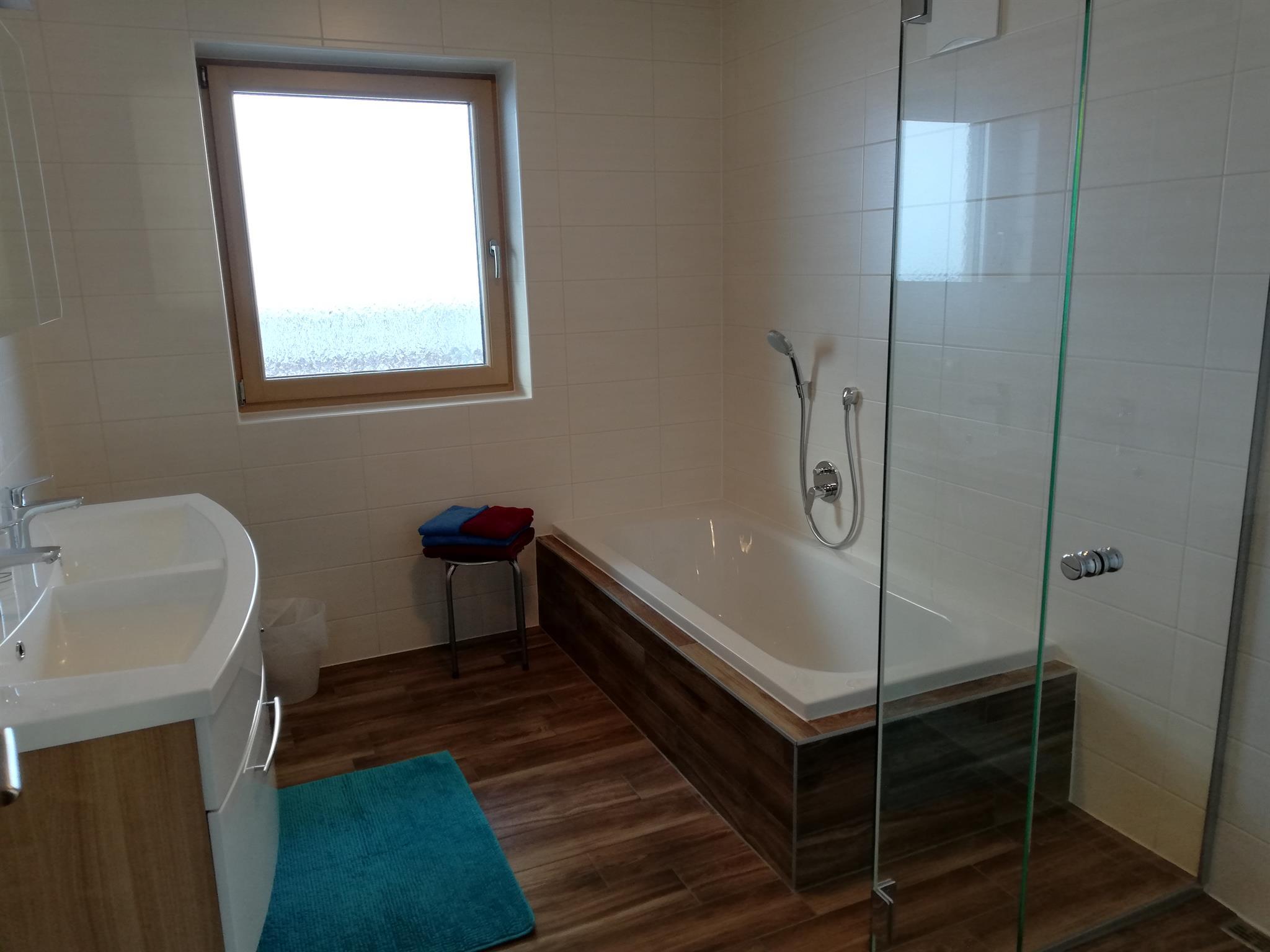 2 DZ 1 Bett m. 140cm 1 Zimmer m.Stockbett 1 Badezimmer m. Dusche, Badewanne, doppeltem Waschtisch 1 Dusche mit WC, 1 WC Wohnküche (kompl. ausgestattet mit E-Herd, Backofen, Geschirrspüler, Dunstabzug, Kühlschrank m. Gefrierteil, Mikrowelle, Wasserkocher,