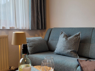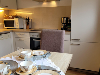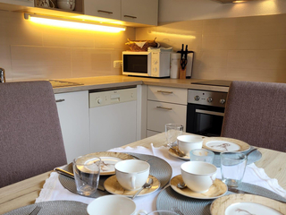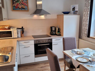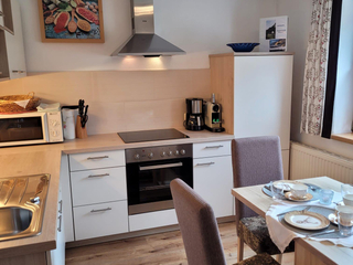 gemütliche FeWO.f.2-4 Pers. mit 1 Doppelzimmer (SAT-TV) 1Wohn/Schlafzimmer mit aus-bzw. einklappbarem Doppelschlafbett (SAT-TV), komplett ausgestattete Küche m.Sitzecke (Geschirrspüler, E-Herd mit Backofen, Mikrowelle, Toaster,
