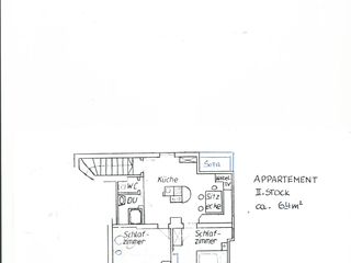 eingerichtet im Tiroler Stil ca 64 m2 im 2. Stock mit Balkon gegen Westen 2 getrennte Schlafzimmer, Dusche, WC, eingerichtete Küche Backofen, Spülmaschine, Kaffeemaschine