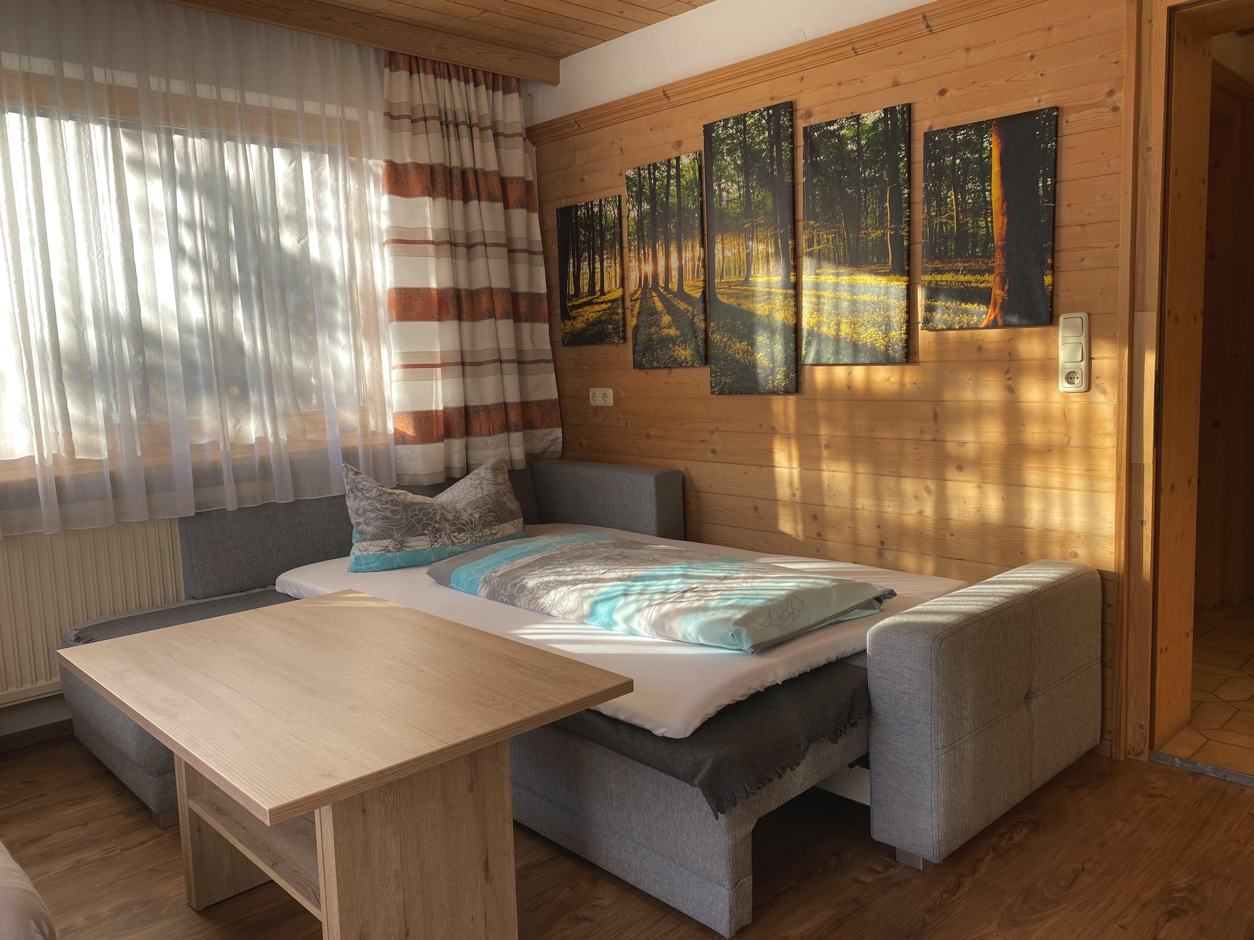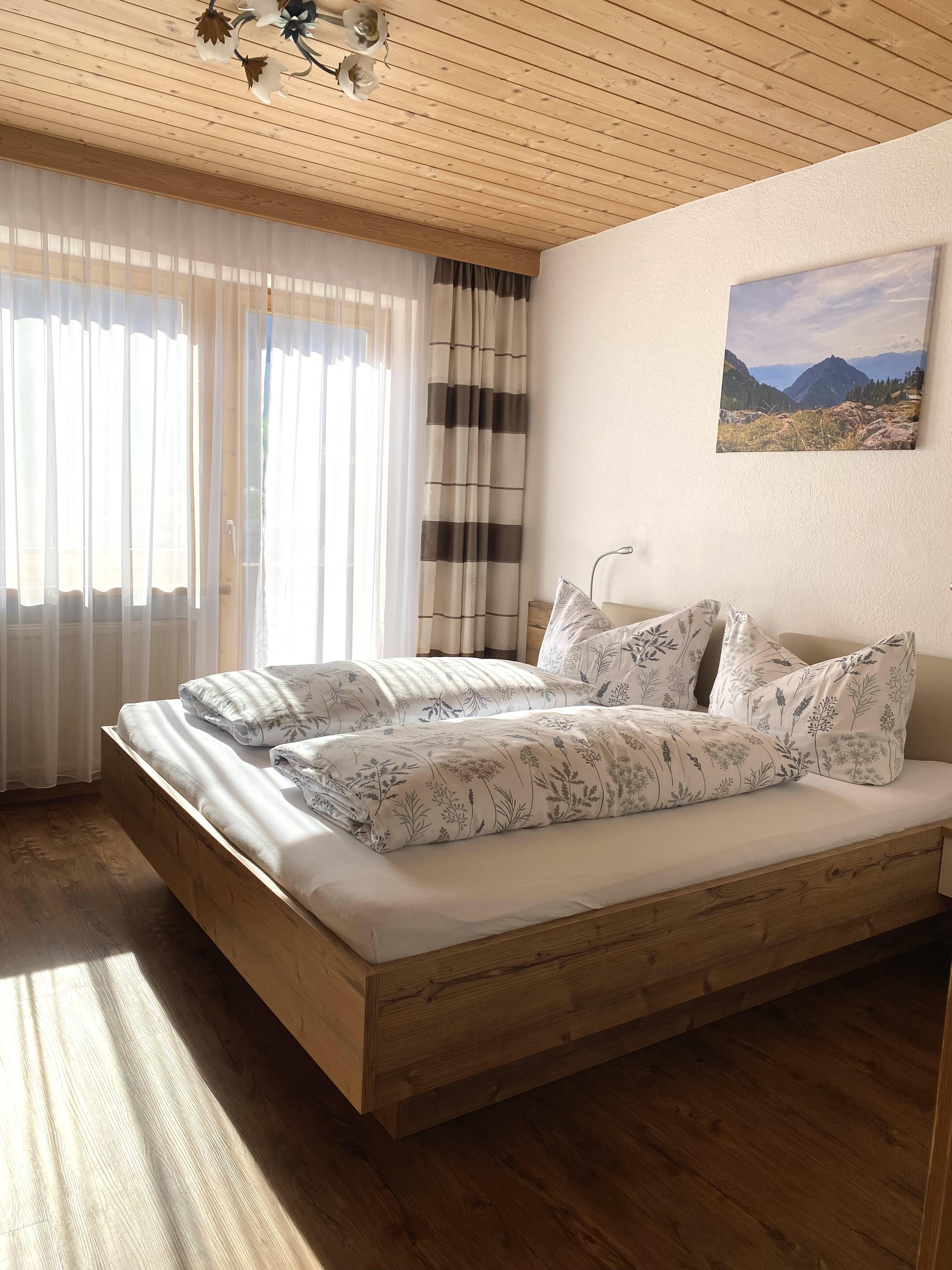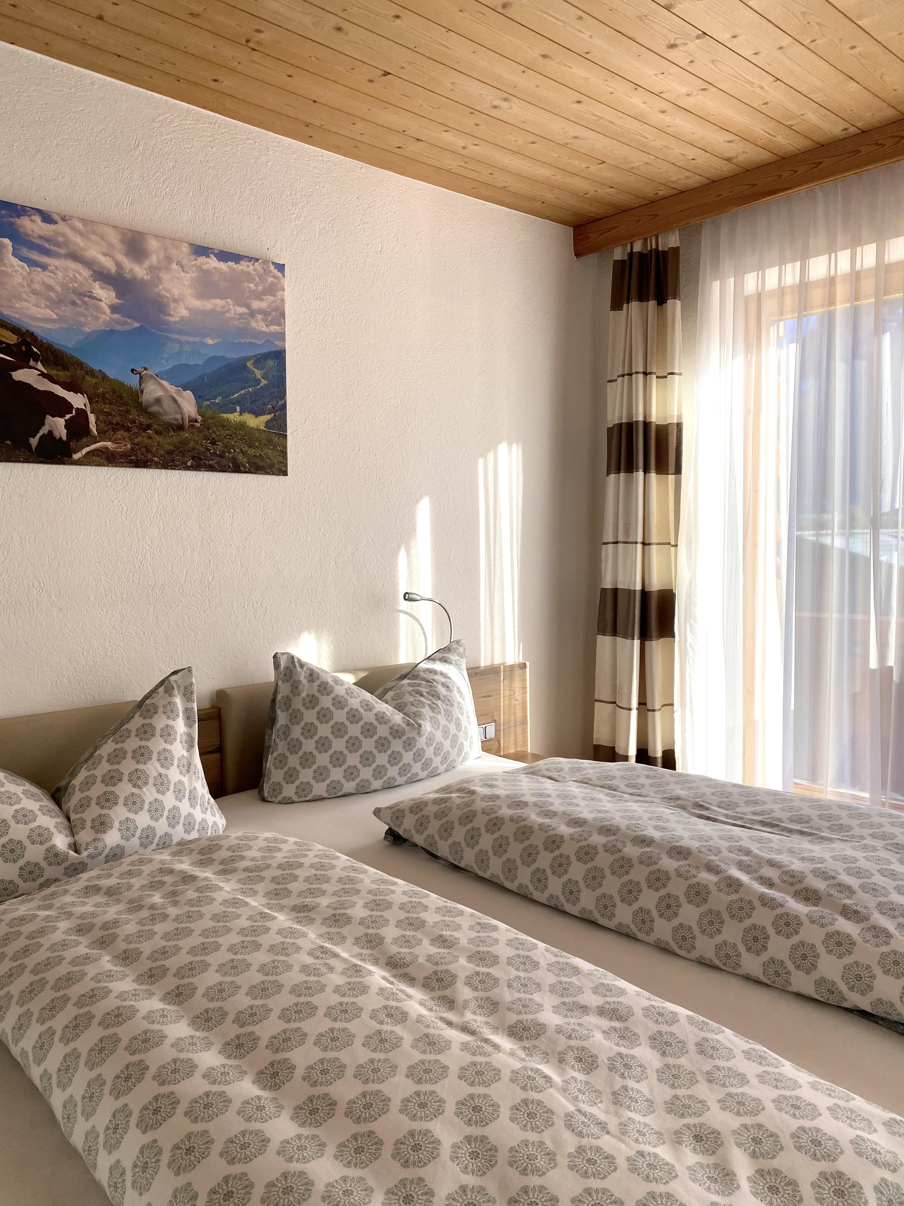 Unsere 20m² großen, neu renovierten Gästezimmer, laden mit Ausblick auf unsere wunderschöne Bergwelt zum Entspannen ein.