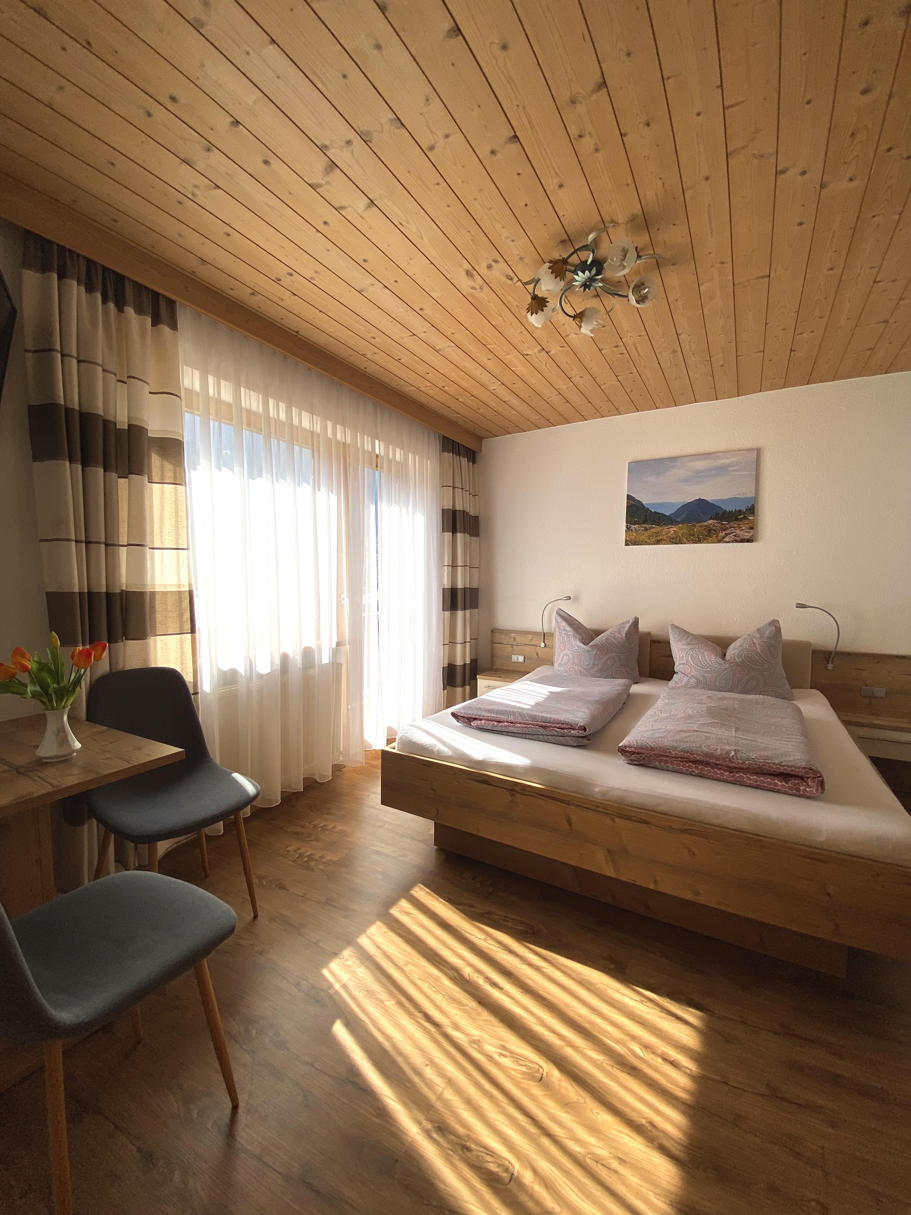 Unsere 20m² großen, neu renovierten Gästezimmer, laden mit Ausblick auf unsere wunderschöne Bergwelt zum Entspannen ein. Das lichtdurchflutete Zimmer verfügt neben einer komfortablen Einrichtung auch über einen sonnenzugewandten Balkon.