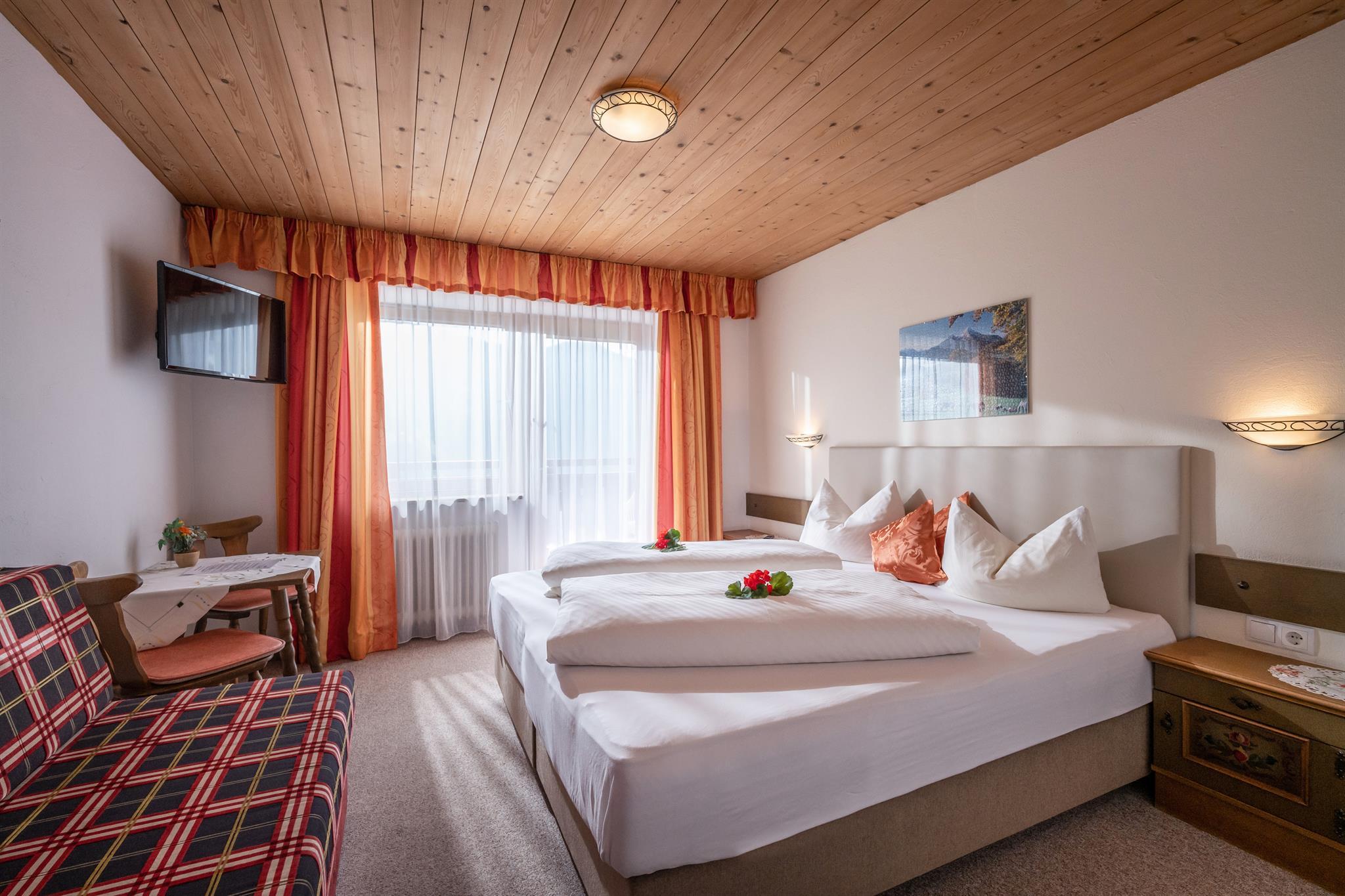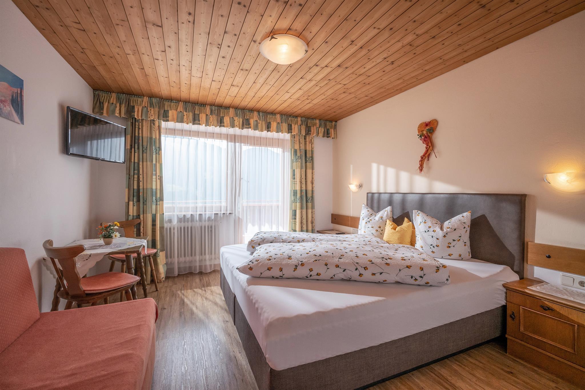 In unseren zehn Doppel- bzw. Mehrbettzimmern können Sie es sich so richtig gemütlich machen. Klassisch in Holz eingerichtet, präsentieren sich unsere Zimmer im Flair des Tiroler Zillertales. Alle Zimmer sind mit Raucherbalkon ausgestattet und bieten