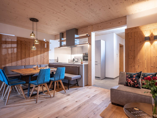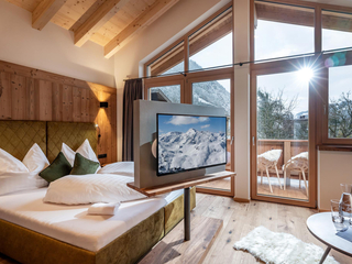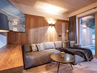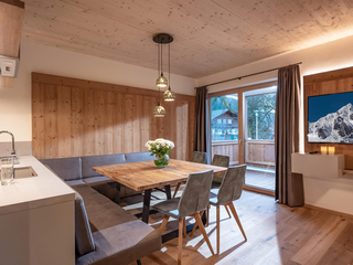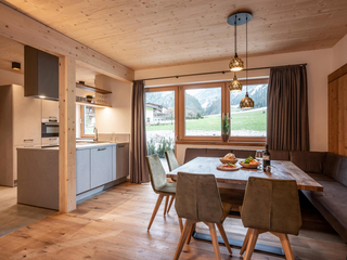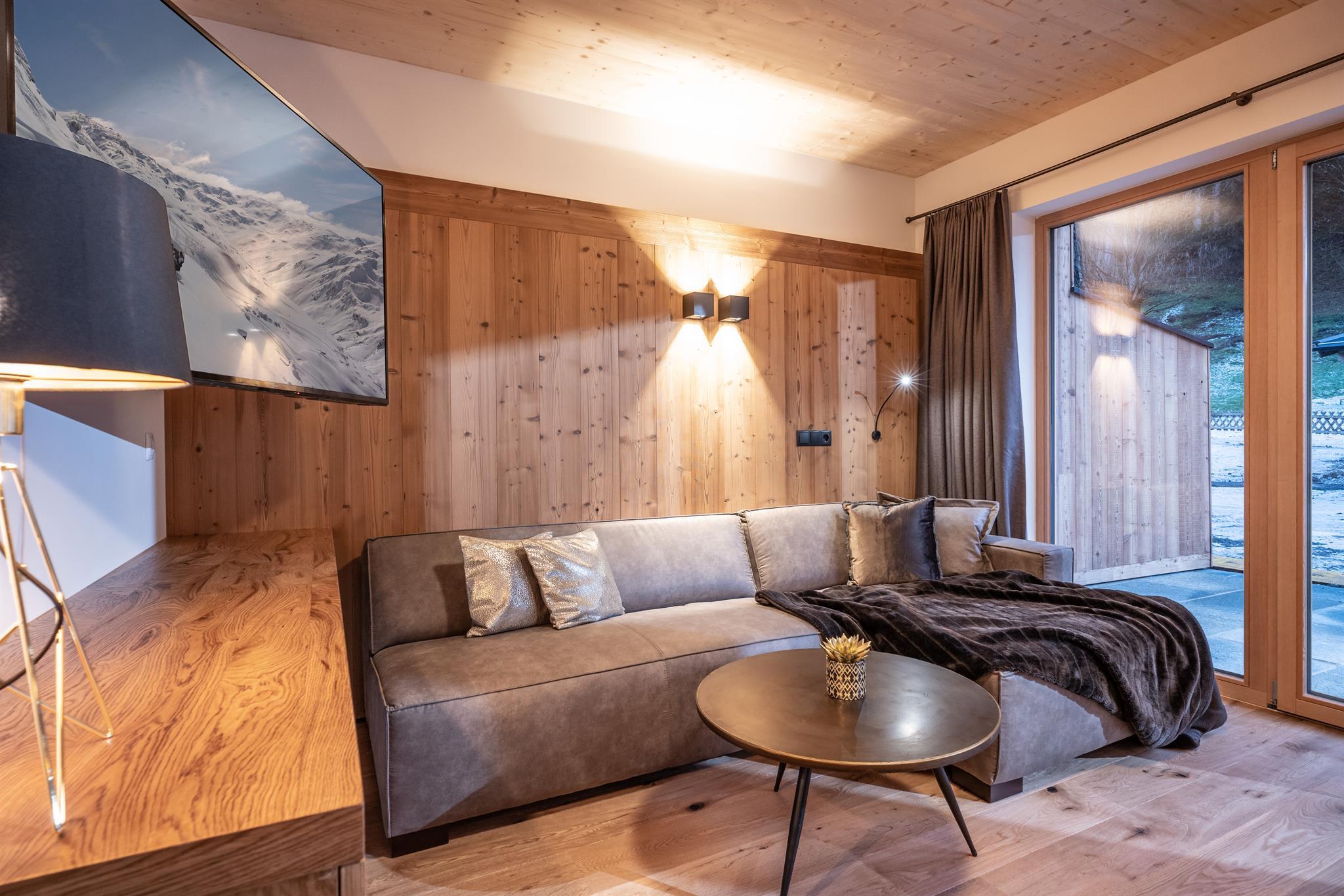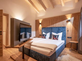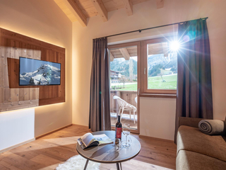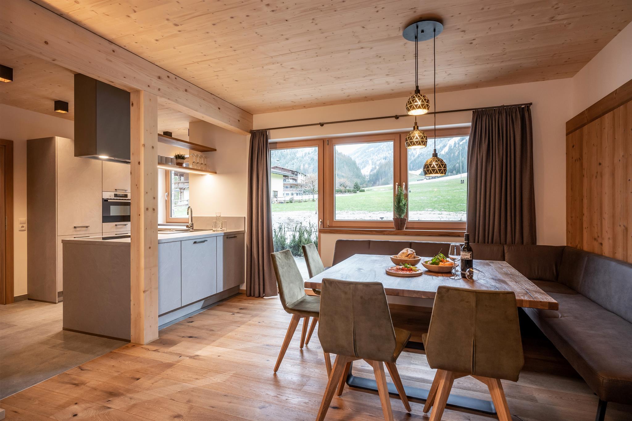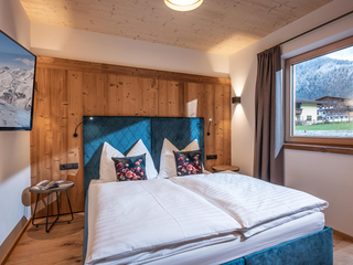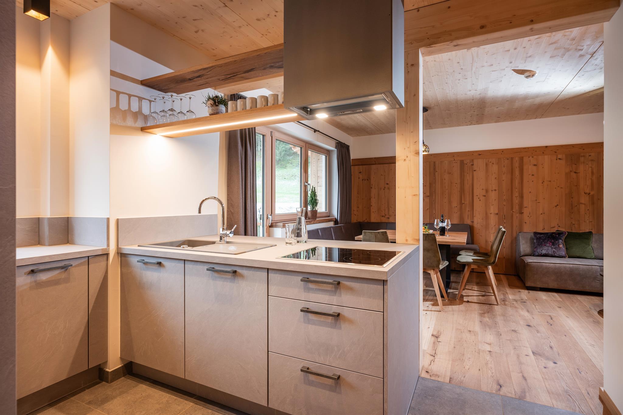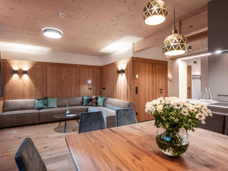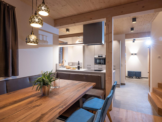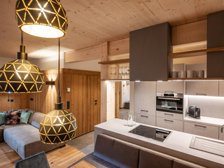 132m² für 8-10 Personen - geräumige Garderobe mit Sitzgelegenheit - 3 stilvolle Schlafzimmer mit hochwertigen Boxspring-Doppelbetten - zusätzlich 1 Panorama Schlafzimmer-Suite mit Ahornblick - vollausgestattete moderne Küche - gemütlicher Wohnraum