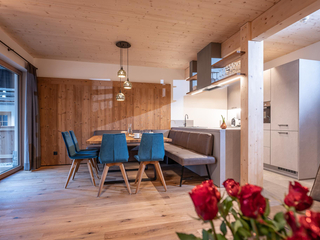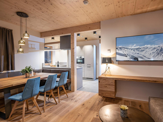 106m² für 6-8 Personen - geräumige Garderobe mit Sitzgelegenheit - 2 stilvolle Schlafzimmer mit hochwertigen Boxspring-Doppelbetten - zusätzlich 1 Schlafzimmer deluxe mit großem Panoramafenster - vollausgestattete moderne Küche - gemütlicher Wohnraum