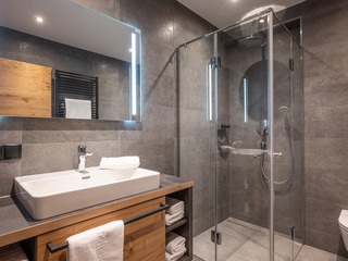 121m² für 8 Personen - geräumige Garderobe mit Sitzgelegenheit - 2 stilvolle Schlafzimmer mit hochwertigen Boxspring-Doppelbetten - 1 Schlafzimmer deluxe mit großem Panoramafenster - 1 separates Schlafzimmer mit zwei kuscheligen Boxspring-Einzelbetten