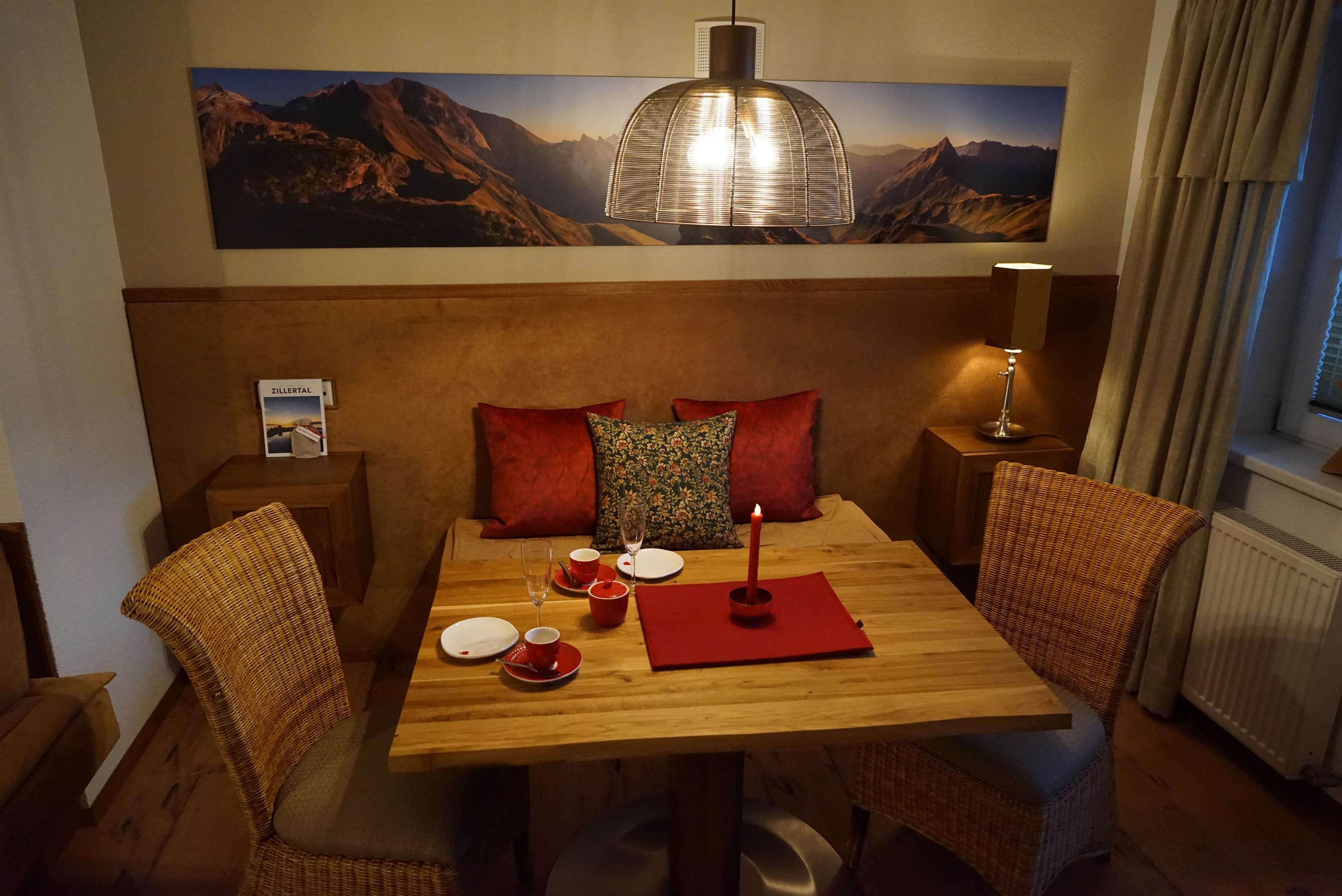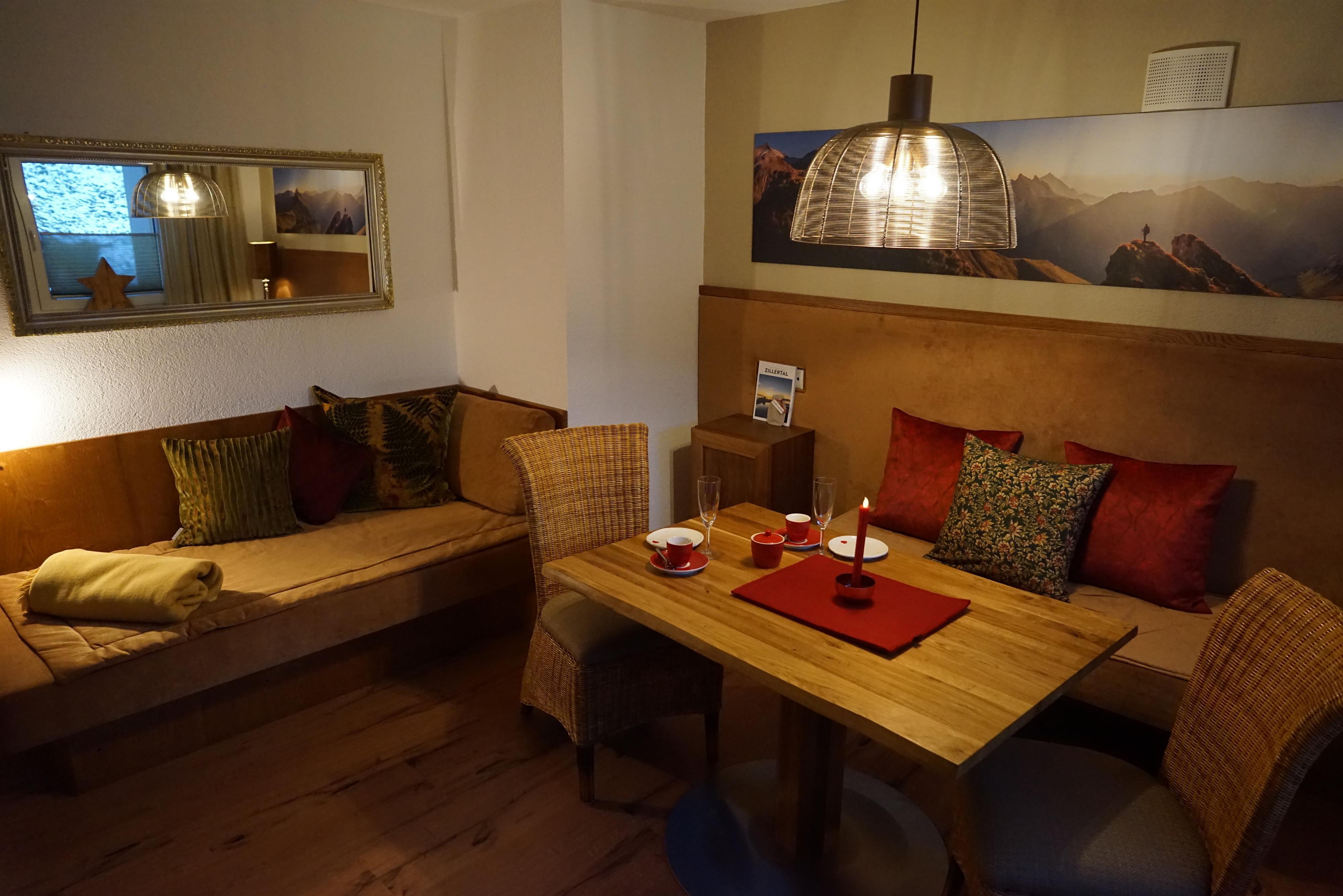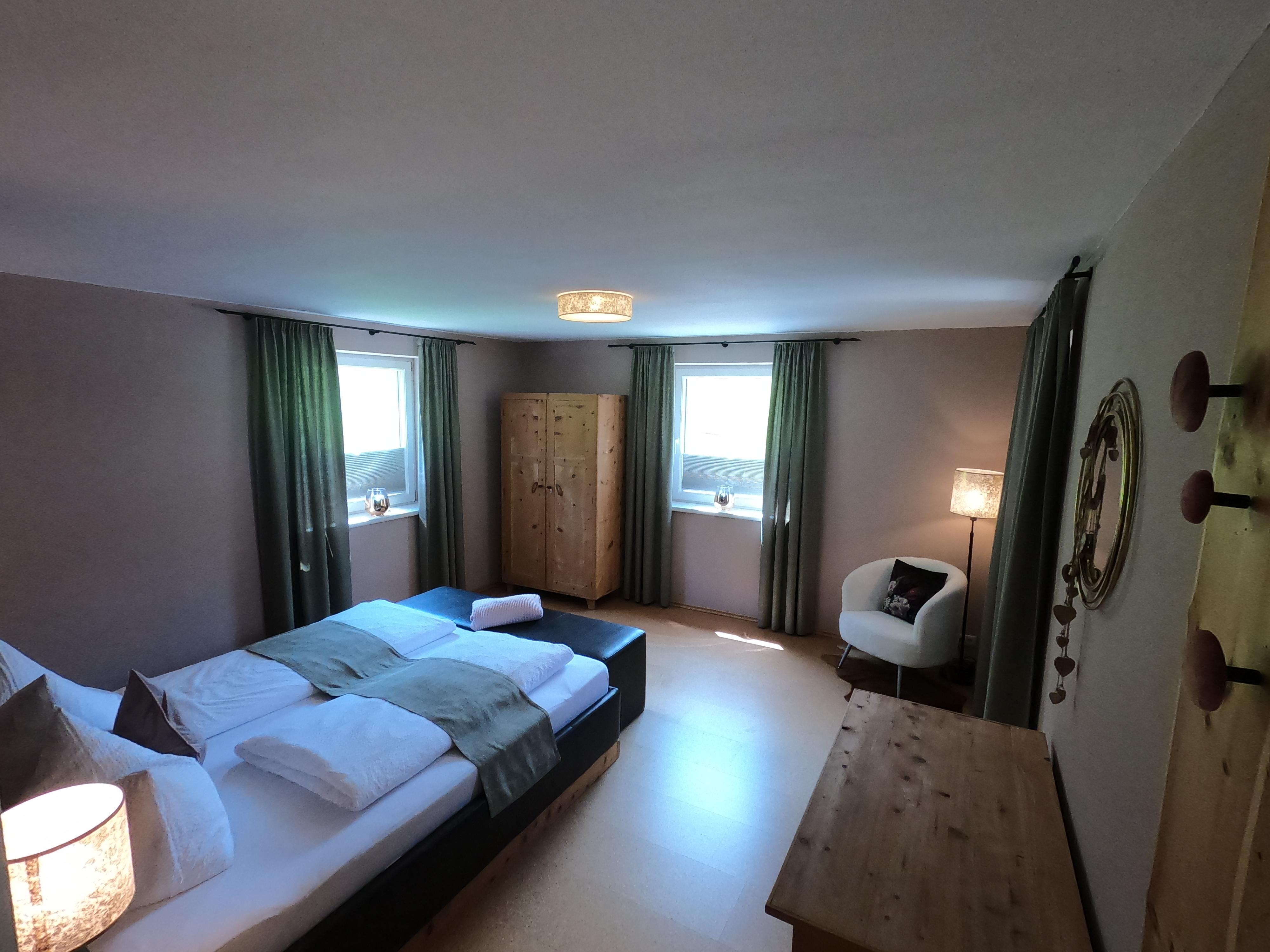 Die geräumigen Ferienwohnungen sind perfekt für Familien und bieten alle Annehmlichkeiten, die man sich wünschen kann. Sie liegt in der 1. Etage. Mit viel Liebe zum Detail wurde jeder Raum eingerichtet. Ein Schlafzimmer wurde mit renovierten Zirbenmöbeln ausgestattet. Das Zweite - dezent in weiß und natur - gehalt. Die Küche ist seperat. Vom Wohn/Esszimmer kommen Sie auf die südliche Terrasse.Genießen Sie die frische Bergluft auf Ihrer eigenen Terrasse. Der Schuhtrockner sorgt dafür, dass Ihre Ausrüstung immer einsatzbereit ist, egal ob Sie wandern, skifahren oder einfach nur entspannen möchten.