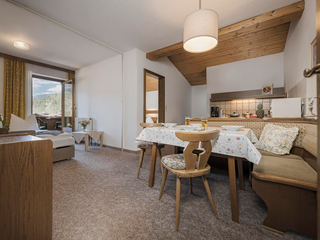 Unsere Ferienhwohnung Alpenrose bietet mit 35m2 platz für bis zu 4 Personen. In der Wohnung befindet sich ein abgeschlossen Schlafzimmer, ein ausziehbares Schlaf-Sofa, eine kleine Küche, einmal Dusche/WC, ein gemütlicher Essbereich und verfügt über einen