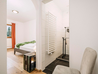 Unsere Ferienhwohnung Tristnerblick bietet mit 52m2 großzügig platz für bis zu 3 Personen. In der Wohnung befindet sich ein sperates Schlafzimmer, eine große Dusche, eine kleine Dusche mit WC, eine Küchenzeile, ein angenehmer Couchbereich mit Couchtisch