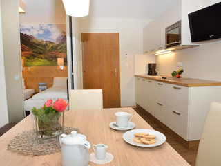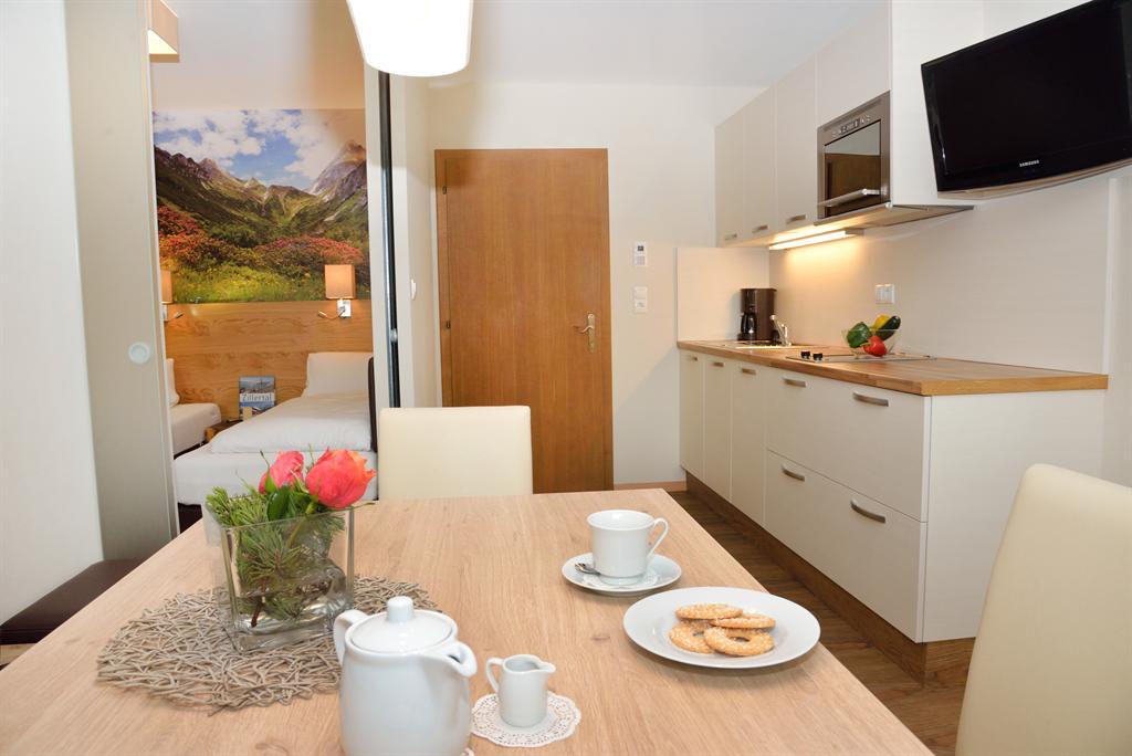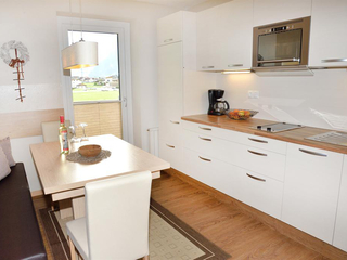 Einfach wohlfühlen in der Ferienwohnung ROSI für 4 Personen - Wohnküche mit Sat/TV Balkon - 1 Schlafraum (getrennte Betten) durch Glasschiebetüre von Küche getrennt mit DU/WC - 1 Schlafzimmer mit mit DU/WC Sat/TV - Balkon - in der Hauptsaison