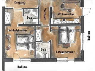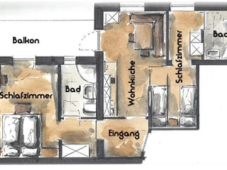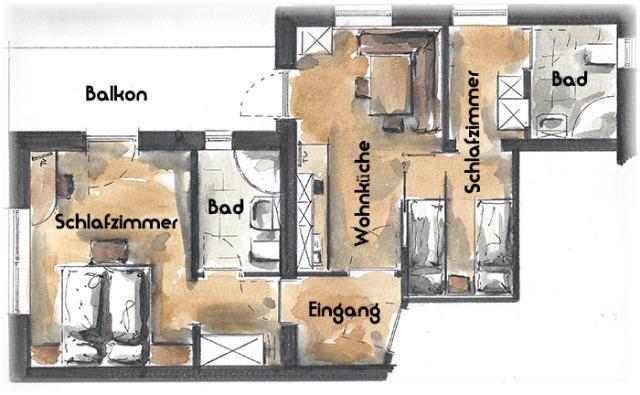 Appartement/Fewo, Dusche, WC, 2 Schlafräume