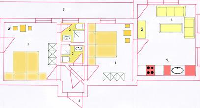 Neu eingerichtete Wohnung mit drei Doppelzimmer, eines davon direkt neben der Ferienwohnung. Alle Zimmer verfügen über ein eigenes Bad mit DU/WC. Zwei Zimmer mit Sat-TV, 1 Zimmer mit Minibar, Wohnküche mit SAT-TV/Radio.