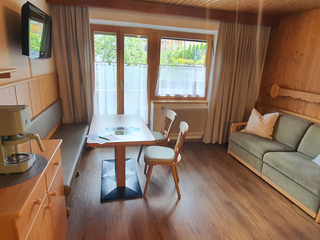 Apart 2 im 1. OG: (für 4 Personen) - 2 Doppelzimmer mit Dusche, WC, Waschbecken und Balkon - gemütliche Wohnküche mit Balkon - großzügiger Balkon mit Rundumblick, Sitz- und Essgelegenheiten