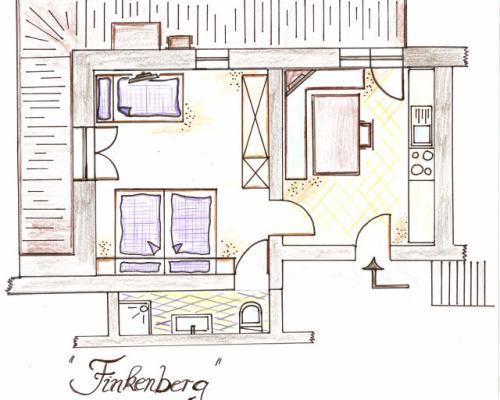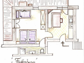 Gemütliche, ca. 35m² große Ferienwohnung für bis zu 3 Personen. Küche und Schlafzimmer sind hier getrennt. Zusätzlich Bad mit Dusche/WC sowie ein großer Westbalkon.