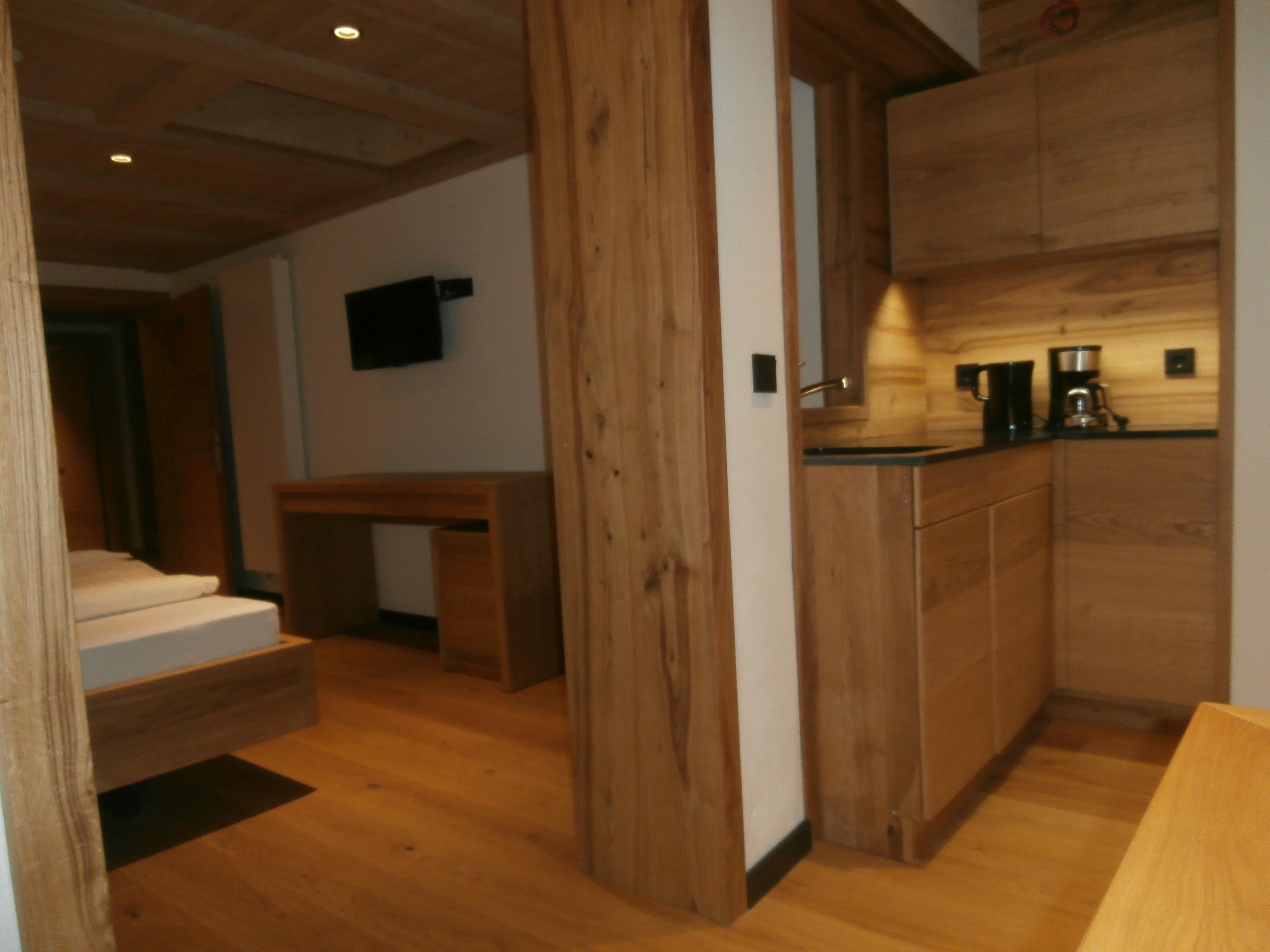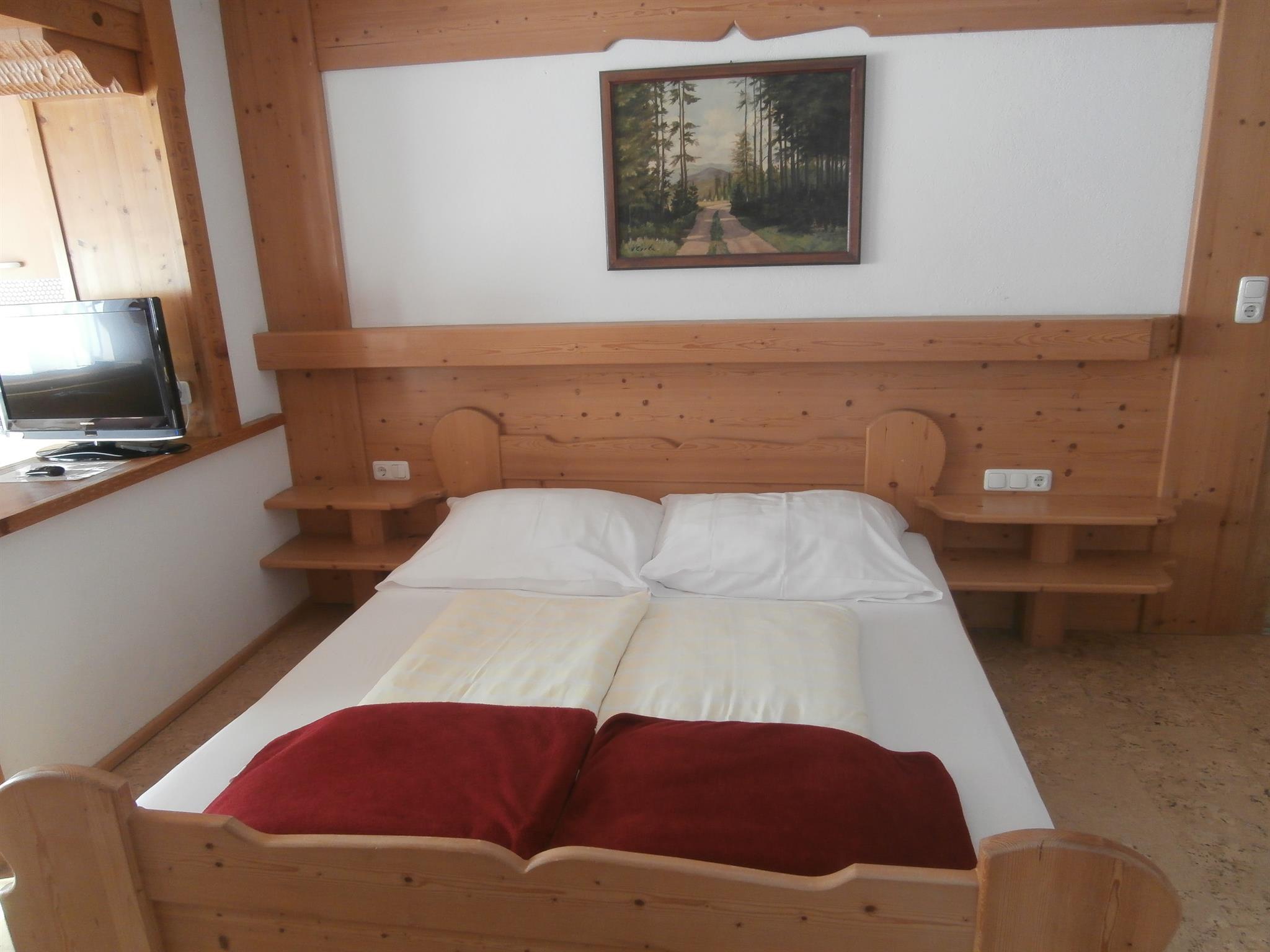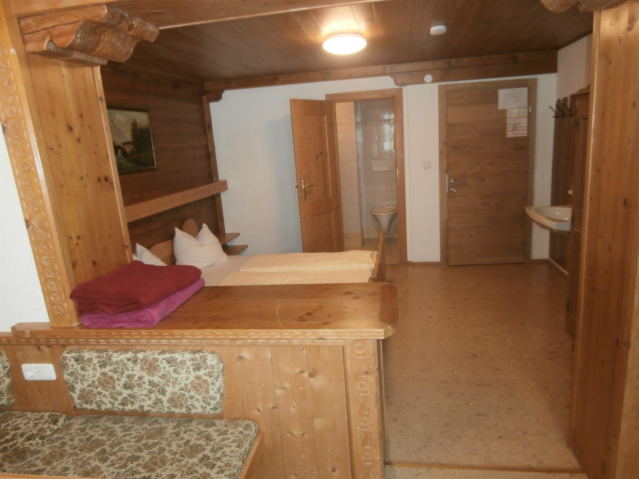 Im Landhausstil gemütlich eingerichtetes Doppelzimmer mit eingebauter Sitzecke, Dusche,WC, Balkon, Safe und Sat-TV.