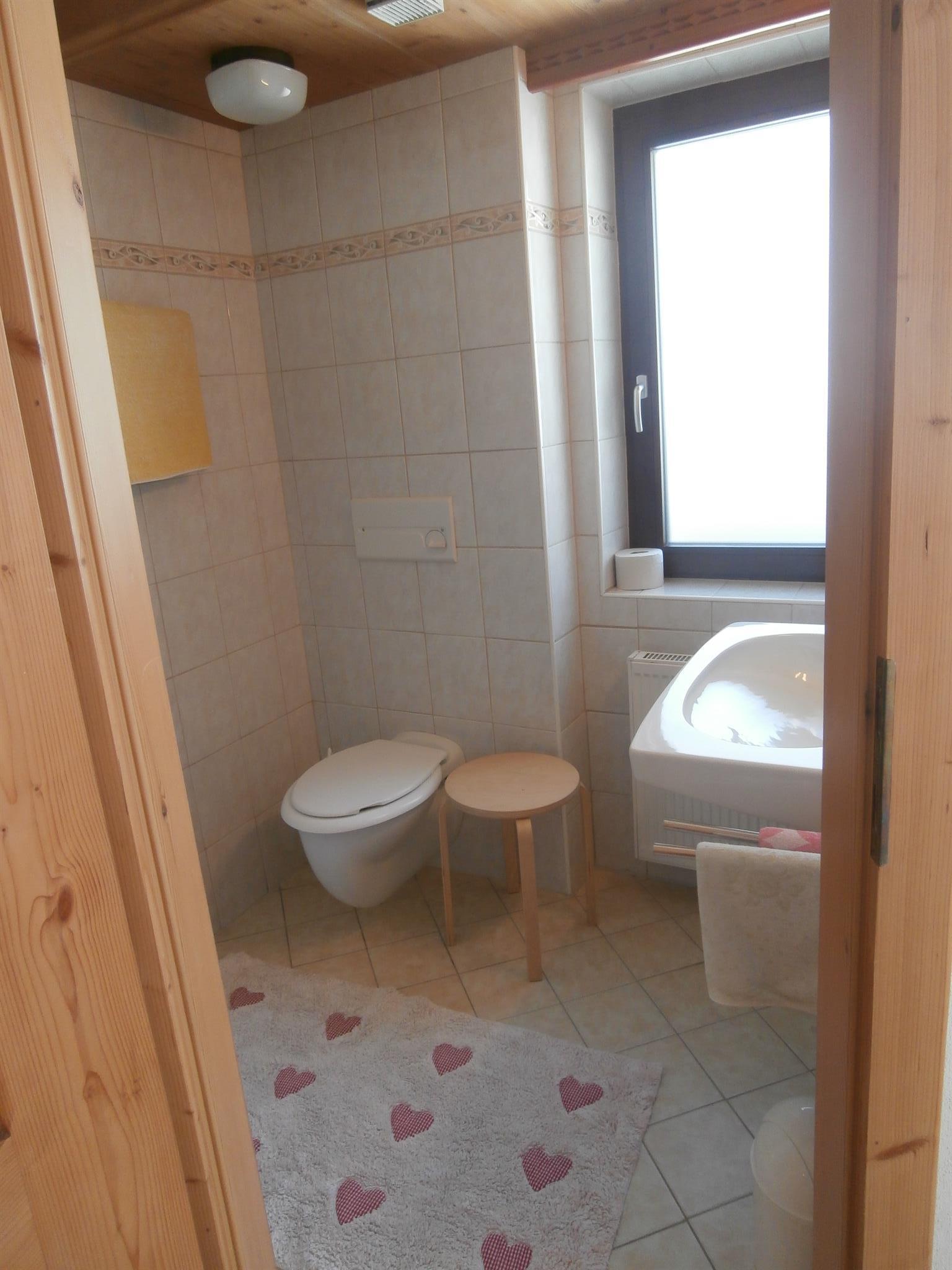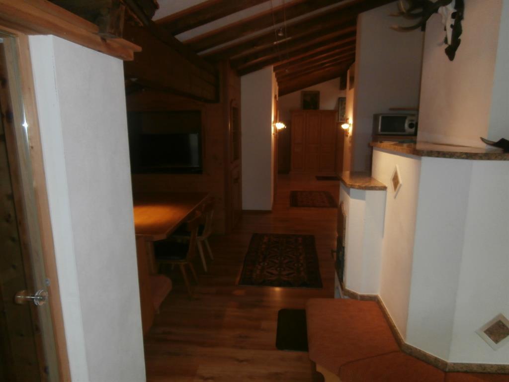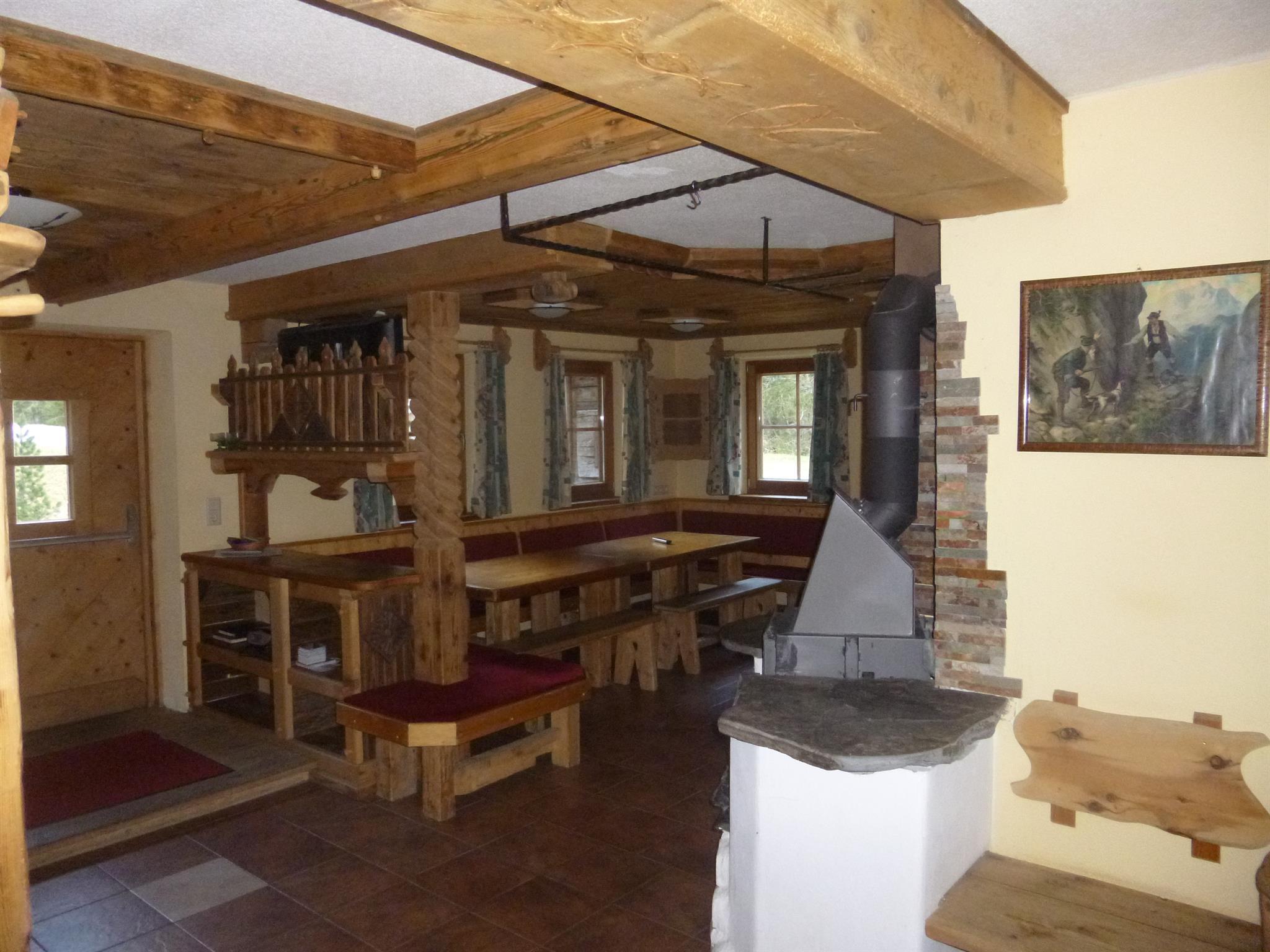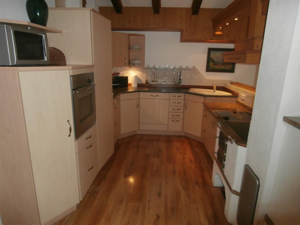 Ferienwohnung im Obergeschoß mit offenen Dachstuhl, Vorraum mit offener großer Wohnküche ( voll eingericht. mit Geschirrspüler ) mit Kachelofen ,2 Dreibettzimmer, 1 Doppelzimmer,1 kleines Schlafzimmer mit Etagenbett,ein Badezimmer mit Badewanne und