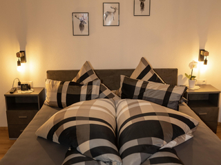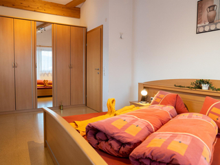 Unsere neu eingerichtete 50m² große Ferienwohnung mit über zwei Schlafzimmern, DU und WC, Vorraum sowie einer komfortabel eingerichteten Wohnküche. Sie lässt sich mit zwei Doppelzimmern (eines zusätzlich mit Schlafcouch) und einer DU/WC für bis zu 10