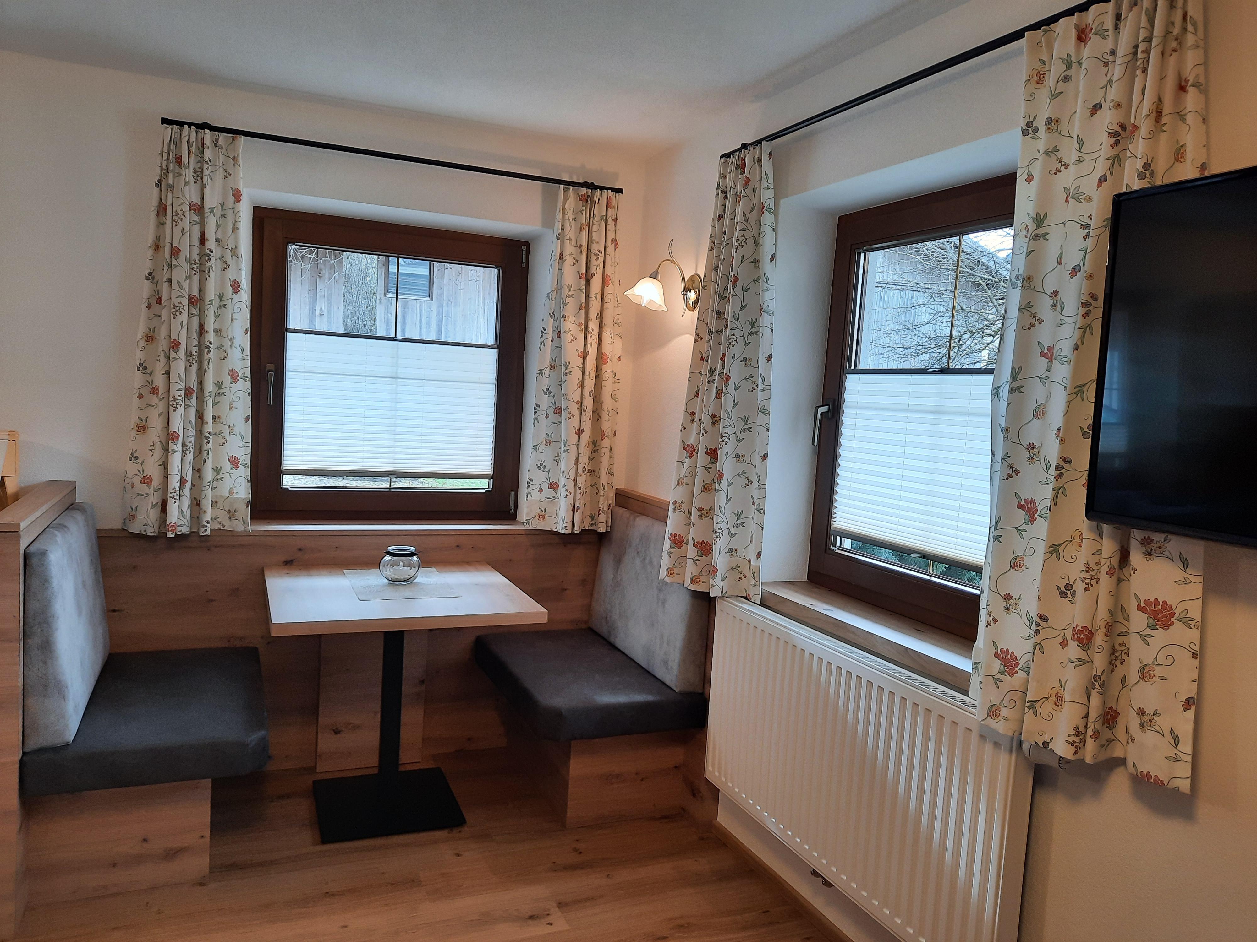 Gemütlich eingerichtetes Studio bestehend aus einem Küchenblock mit Sitzecke, SAT-TV sowie Dusche und WC.