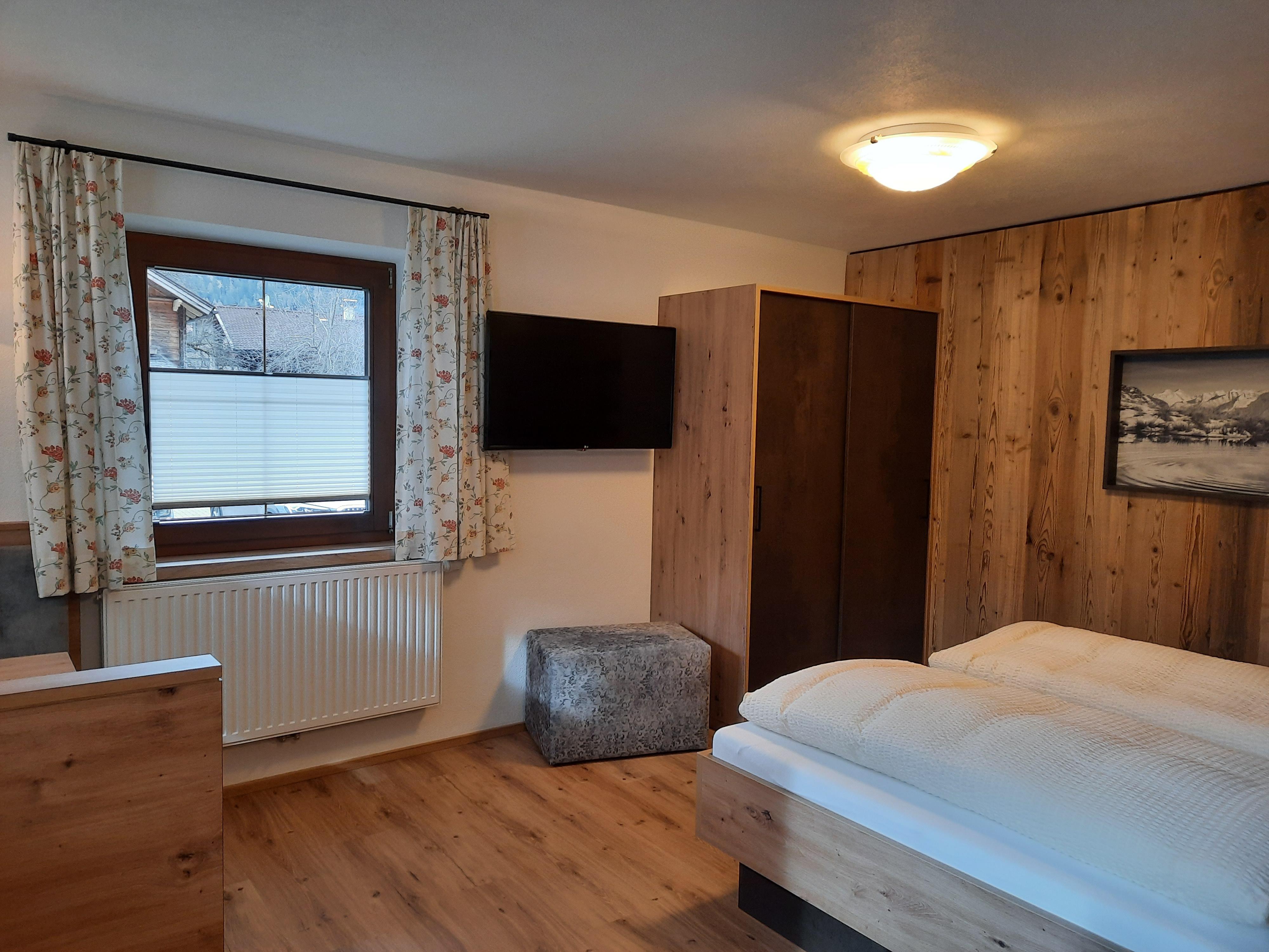 Herzlich willkommen in unserem familiär geführten Gästehaus. Unsere Pension liegt am nördlichen Ortsrand von Mayrhofen im Ortsteil Hollenzen in ruhiger und sonniger Lage mit Blick auf die Zillertaler Bergwelt. Gratis-Skibus- und Dörferbushaltestelle sind ca. 50 m und die Horbergbahn 1 km vom Haus entfernt. Langlaufloipe, Erlebnissennerei und Restaurants in unmittelbarer Nähe. Ausgangspunkt für zahlreiche Wanderungen und Radtouren. Wir vermieten 2 gemütlich eingerichtete Ferienwohnungen mit Balkon. Eine Wohnung für 2 Personen bestehend aus 1 Doppelzimmer mit Dusche / WC und einer Wohnküche mit Schlafcouch, Balkon. Eine Wohnung für 4 Personen bestehend aus 1 Doppelzimmer mit Waschbecken, einem weiteren Doppelzimmer mit Zustellbett, Dusche, WC separat und einer Wohnküche mit Schlafcouch, Balkon. Die Wohnküchen sind komplett ausgestattet (Elektroherd mit Backrohr, Mikrowelle, Geschirrspülmaschine, Kühlschrank mit Gefrierfach, Kaffeemaschine, Wasserkocher, Koch- und Essgeschirr, SAT-TV, Bettwäsche und Handtücher sind vorhanden. Liegewiese, Parkplatz, Aufenthaltsraum mit SAT-TV. Weiters vermieten wir auch Zimmer mit Dusche/WC, SAT-TV und Balkon. Wir bieten Ihnen schöne Urlaubstage zu jeder Jahreszeit.