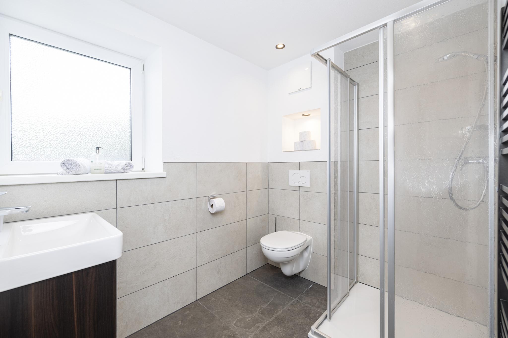 Gemütliche neu renovierte Nichtraucher-Ferienwohnung 67m²: 2 Schlafzimmer, Dusche/WC mit Haarföhn, Wohnzimmer mit Flat-TV, Küche (mit Kaffeemaschine, Kühlschrank, Wasserkocher, Herd mit Backrohr, Geschirrspüler), Balkon, Parkplatz.