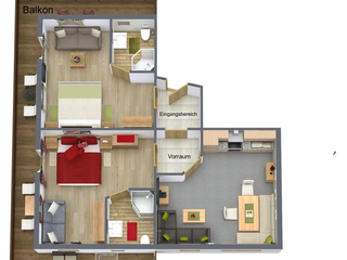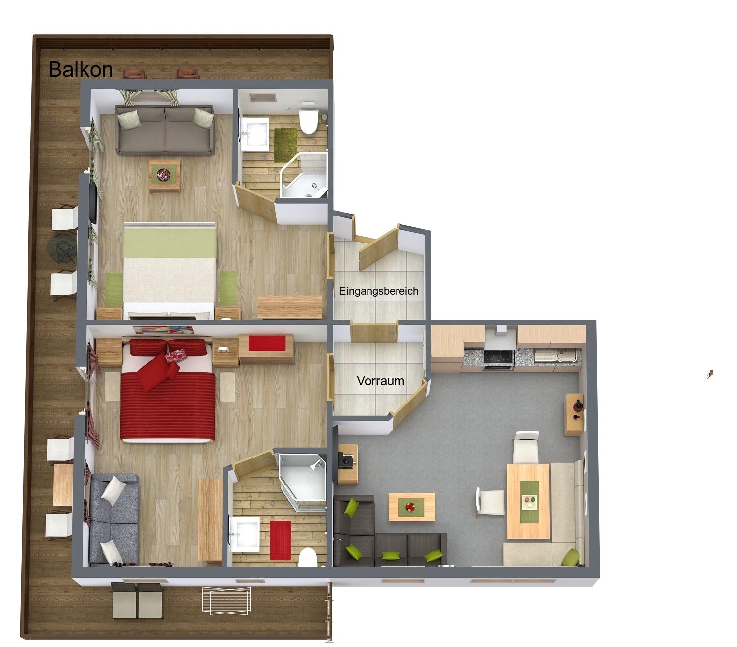 Neu renoviertes Nichtraucher-Appartment für 2 bis maximal 8 Personen, geräumige Küche mit Geschirrspülmaschine, Flat-TV, Essecke und Couch (Doppelschlafcouch), 2 Doppel- oder Mehrbettzimmerfür jeweils 2-4 Personen mit einem Doppelbett und einer