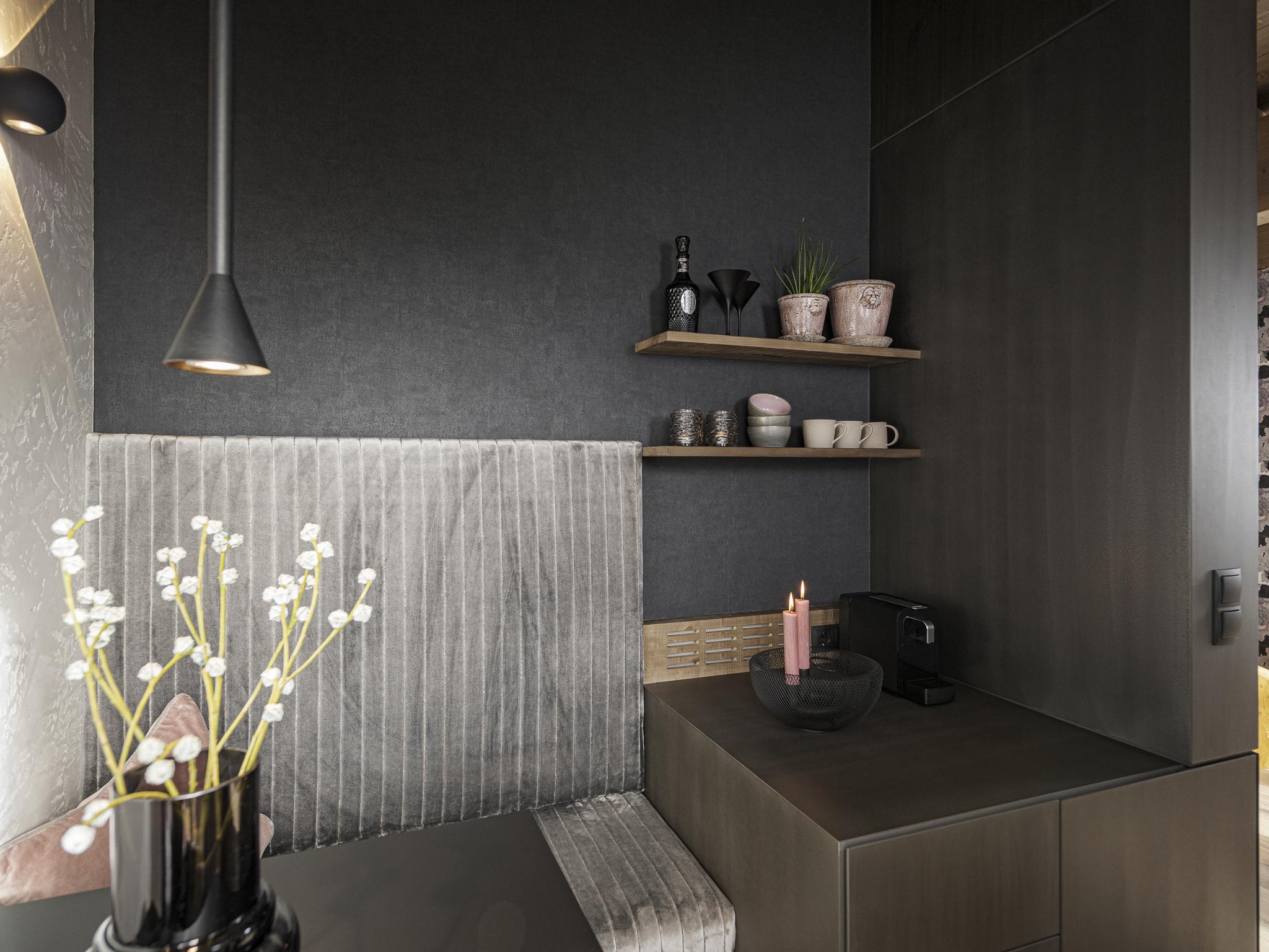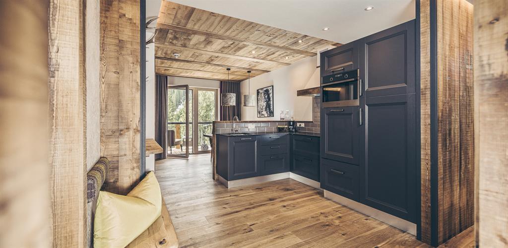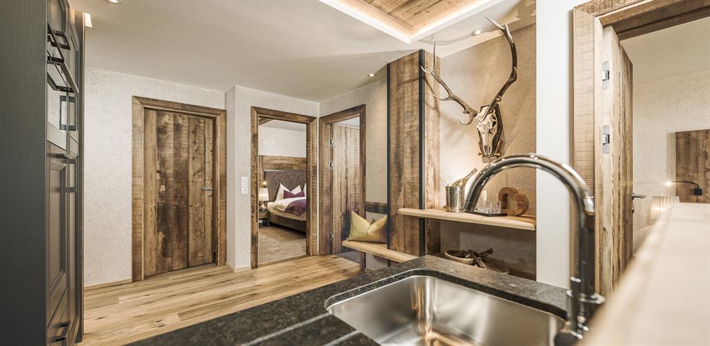 Unser Apartment im Nebenhaus bietet modernes, alpines Ambiente mit gehobener Innenarchitektur. Appartement mit außergewöhnlichem Flair, indem Sie herrlich entspannen können. Ideal für Familien und Paare Größe 64m², 2 Schlafzimmer, Falt-TV 55",Wohnzimmer