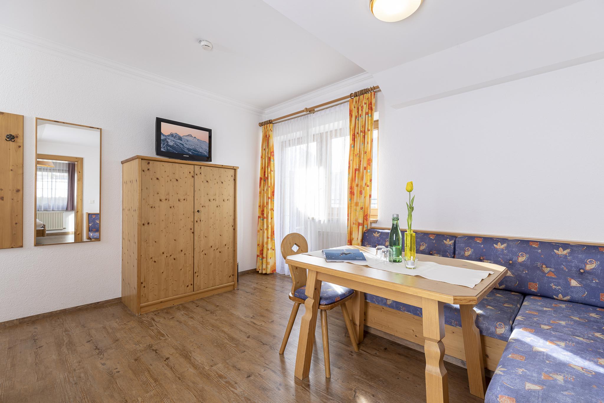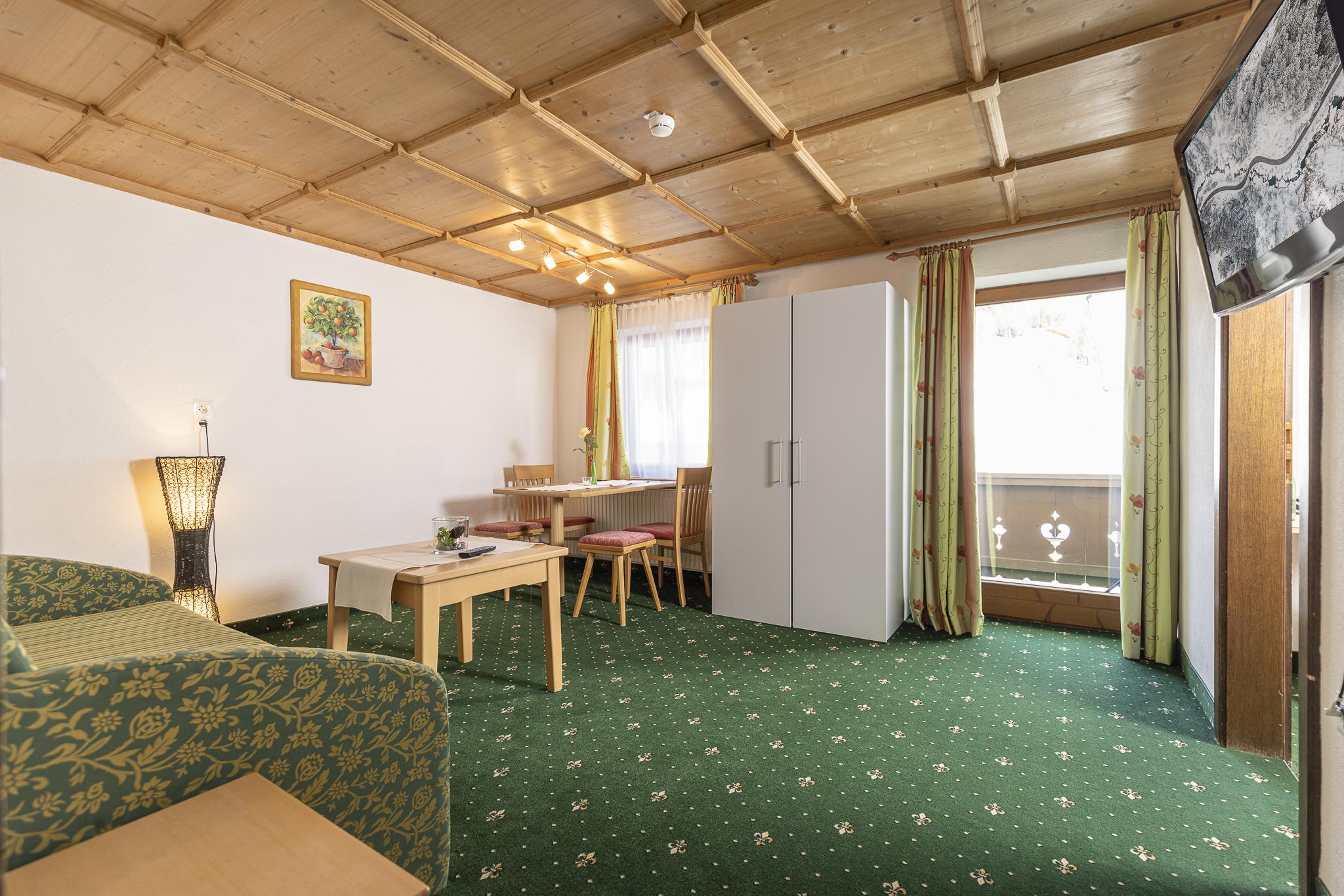 Doppelzimmer, Wohnraum mit Schlafsofa für 2 Personen, DU/Fön, WC separat, Balkon, Vorraum mit Garderobe, Kabel-TV mit integriertem Radio im Doppelzimmer und Wohnraum, Kühlschrank für kalte Getränke, Telefon, Zimmersafe, W-Lan