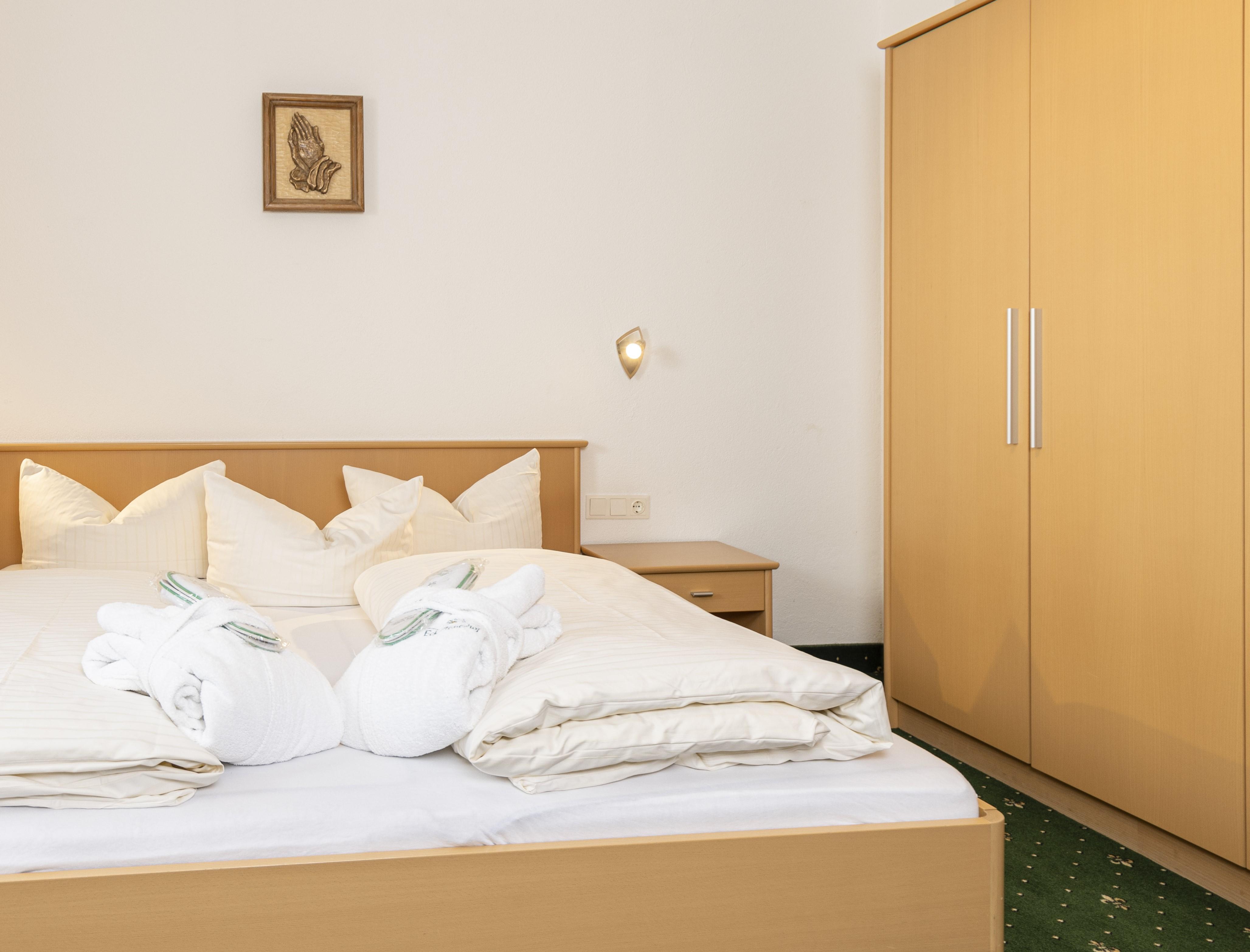 gemütliches Wohlfühlzimmer für 2-3 Personen Doppelbett und Einzelbett, DU/WC/Fön, Balkon mit Blick auf die Bergwelt, Kabel-TV mit integriertem Radio, Telefon, Zimmersafe