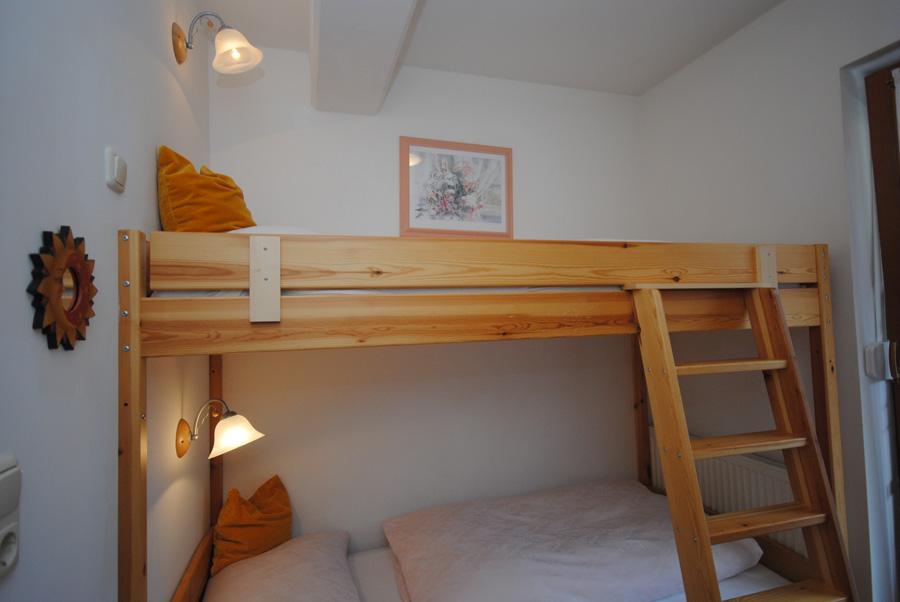 Doppel- und Kinderzimmer (Stockbett, jeweils 90 x 200), großes Turm-Wohnzimmer, rundum Balkon & Terrasse, kleine Küche mit Nespresso Kaffee Maschine, Bad/Dusche/WC, 2 Fernsehgeräte, W-LAN
