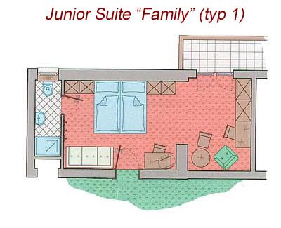 Familienzimmer mit kleinem Wohnteil, Dusche/WC/Balkon, Couch als 3. und 4. Bett möglich, W-LAN