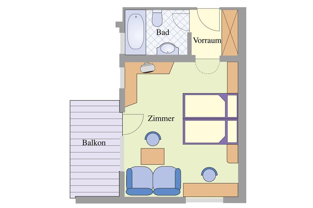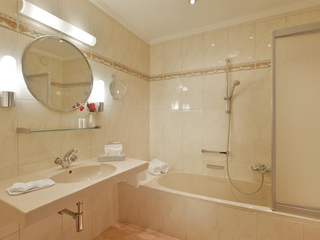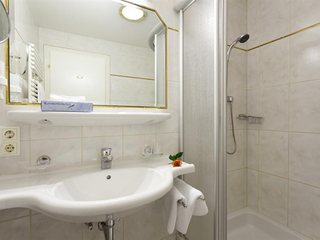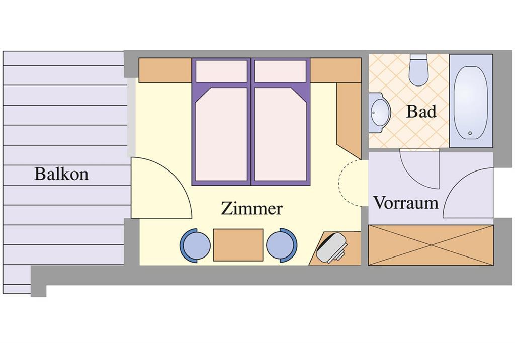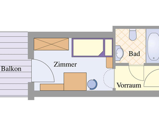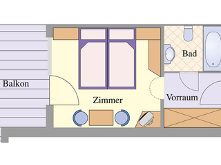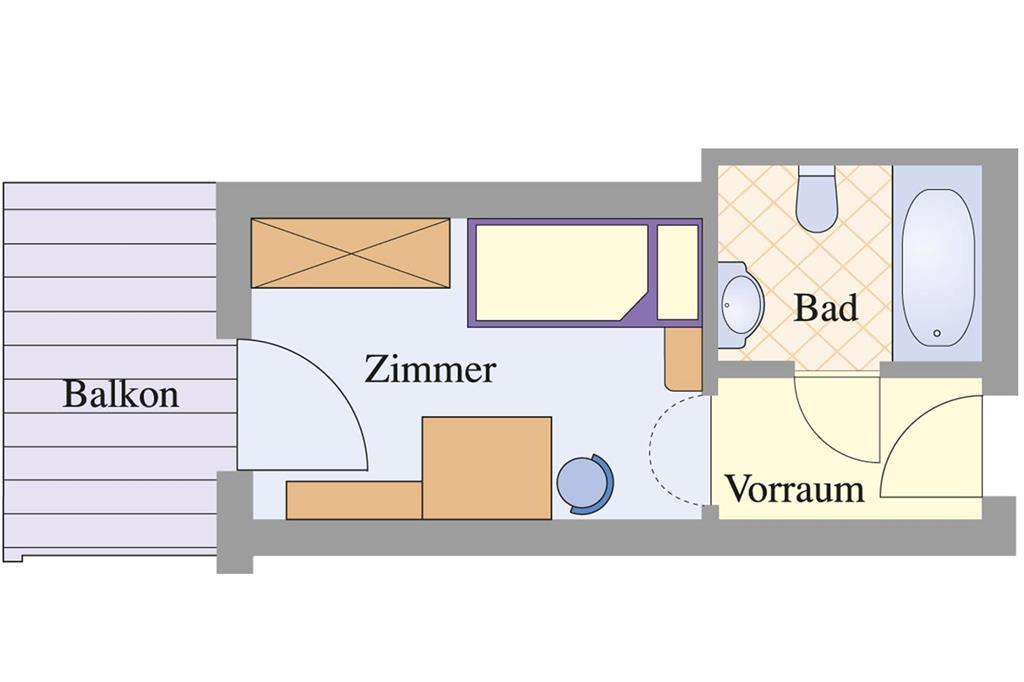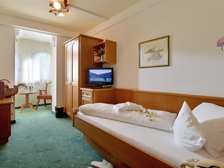 Einzelzimmer mit Bad oder Dusche/WC, Balkon, Radio, Telefon, SAT-TV, Safe, Sitzecke, Bademantel, Fön
