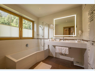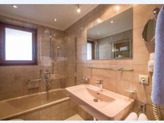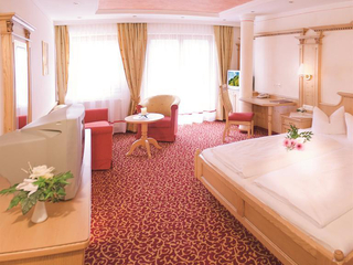 Grosses Doppelzimmer mit Bad oder Dusche, WC, Balkon, Sitzecke, Radio, Telefon, Sat-TV, Safe, Bademantel und Fön und Ausziehcouch, ca. 30m²