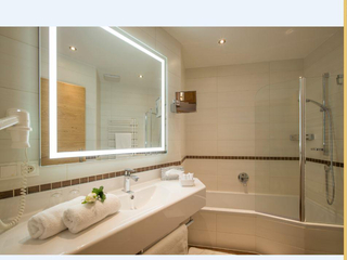 Doppelzimmer mit Bad oder Dusche/WC, Balkon, Radio, Telefon, Safe, Sat-TV, Sitzgruppe, Bademantel und Fön. ca. 24 m²