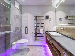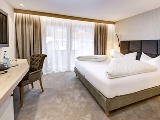 Top Ausstattung mit exklusivem Interieur und besonderem Design - kuscheliges Doppelzimmer mit Boxspringbett auf höchstem Schlafkomfort mit Leseleuchten – 50 Zoll Flat-TV – großzügiger Schreibtisch – Telefon – Safe - Panoramaverglasung – hochwertige