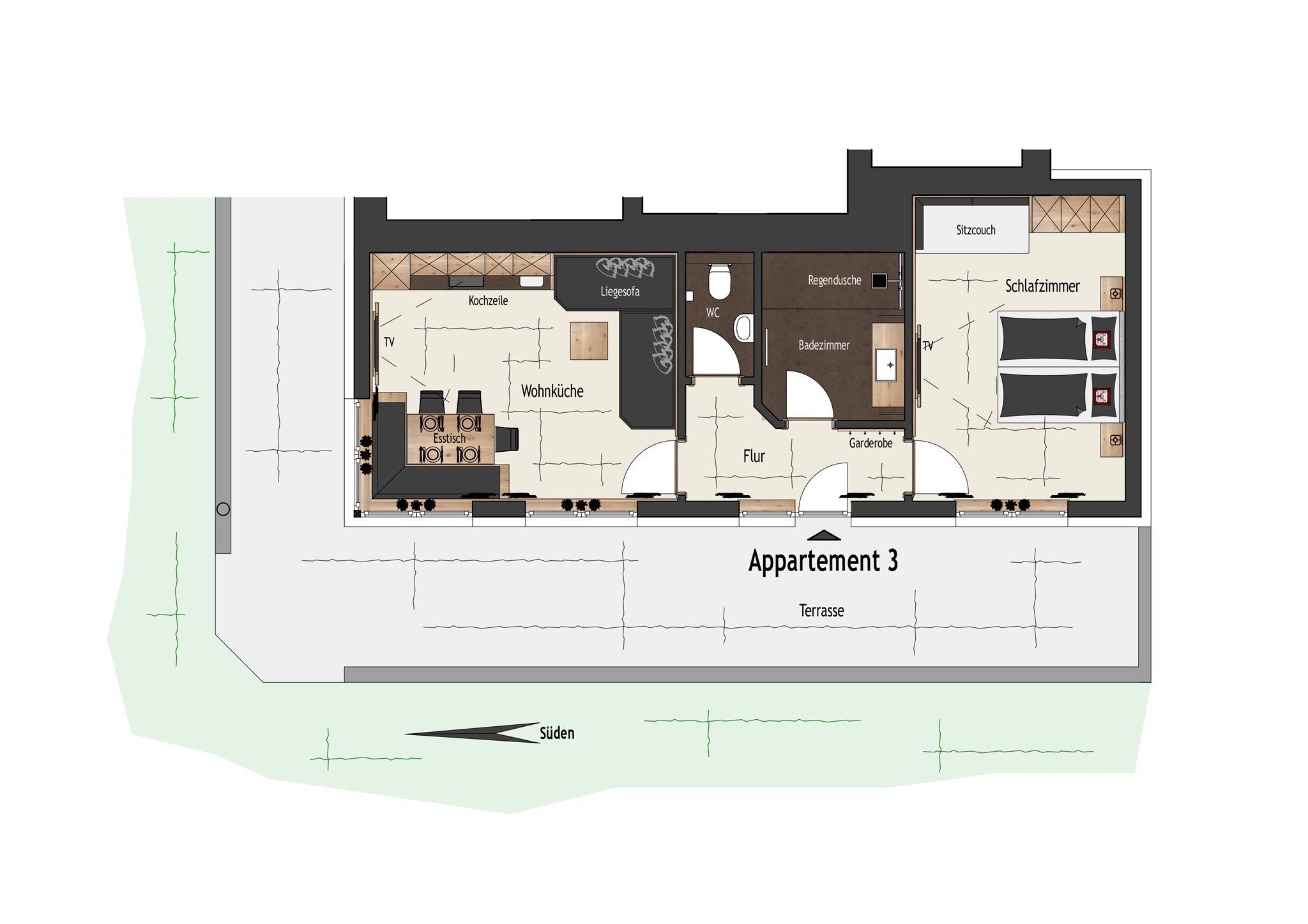 - Wohn-/Schlafräume getrennt •