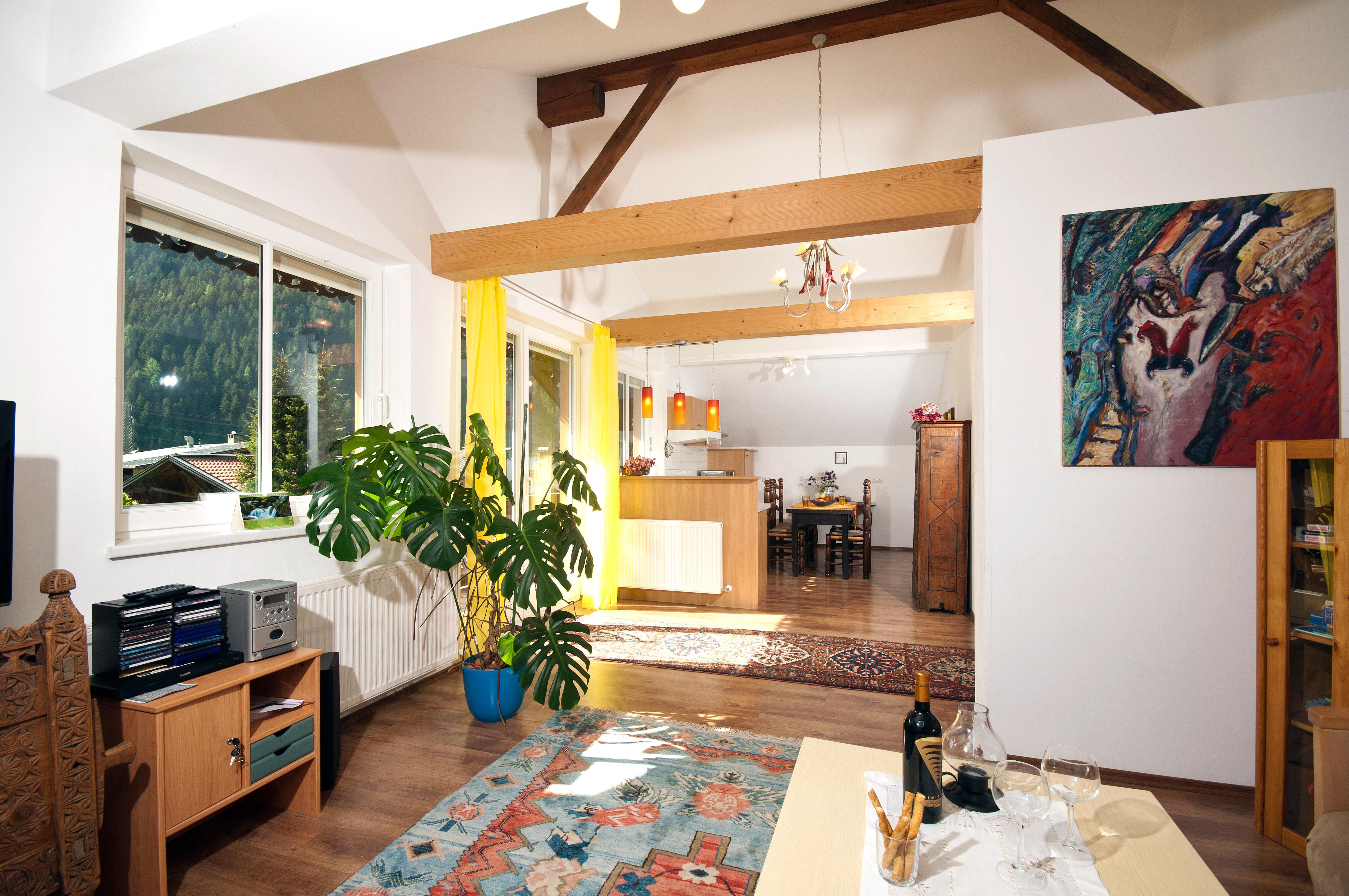 Familienfreundliches Privathaus in zentraler ruhiger Lage, 1 Ferienwohnung 76 qm im zweiten Stock mit herrlicher Aussicht nach Sued-West, großer Balkon, 2 getrennte Schlafzimmer eines mit Kinderbett,1 Badezimmer mit Badewanne und WC. Großer Aufenthaltsbereich mit Kueche (komplett eingerichtet mit Geschirrspüler, Kaffee-Filtermaschine). In unmittelbarer Nähe befindet sich eine Bäckerei mit kleinem Lebensmittelladen. Das Haus liegt in einer ruhigen Nebenstraße unweit der Hauptstraße und dem Ortszentrum.
