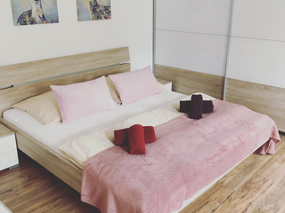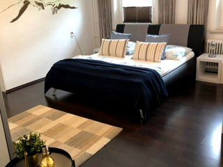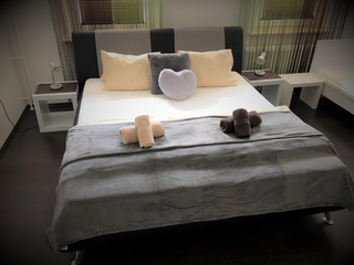 Diese 120m² große Wohnung ist ausgestattet mit 3 Schlafzimmern mit Doppelbetten, Flur mit WC, großes Badezimmer mit Dusche und WC, Wohnzimmer mit großer Schlafcouch, Esszimmer für 8 Peronen und mehr, Vollausgestattete Küche, Hausgang mit Garderobe,