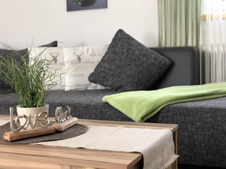 Unsere Ausstattung: Bad/Dusche/WC, Schlafcouch, Handtücher, Bettwäsche, Geschirrtücher, Klopapier, Spültabs, Spülmittel, Geschirrspülmaschine, Mikrowelle, Kaffeemaschine, Toaster, Wasserkocher, KOSTENFREIES W-LAN, Haus-Gang, möblierter Balkon, Abstellraum für Ski-Schuhe inklusive Skischuhtrockner, Grillmöglichkeit im Garten, Waschmaschine sowie Trockner vorhanden