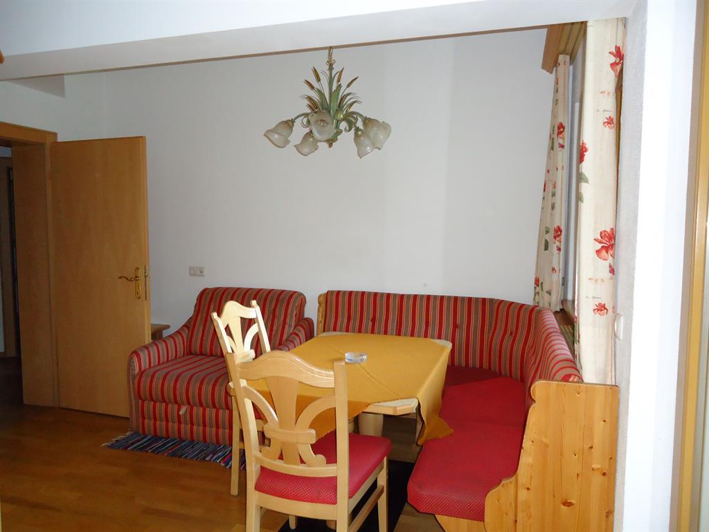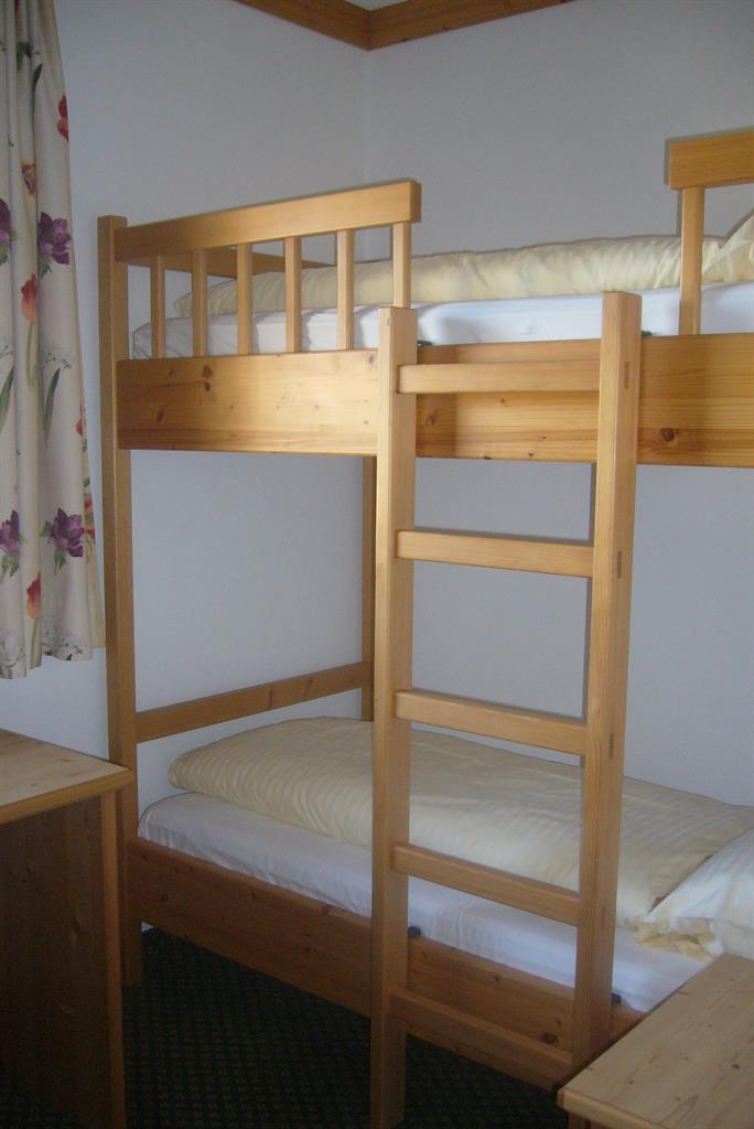 Das Apartment Enzian besteht aus einem Doppelzimmer, einem Stockbettzimmer, einem Wohnzimmer, welches auch als Wohnschlafzimmer für eine Person genutzt werden kann, einer Küche (2 Platten Herd, Mikrowelle, Wasserkocher, Kochgeschirr, Geschirr, Besteck),
