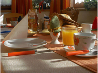 Wir verfügen über 2 gemütliche, rustikal eingerichtete Doppelzimmer mit Dusche/WC, Sofa, Safe, Balkon und Sat-TV. Von den Balkonen hat man einen herrlichen Blick auf die umliegenden Zillertaler Alpen. Gerne servieren wir Ihnen unser reichhaltiges,