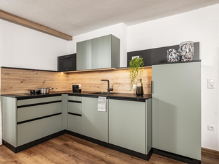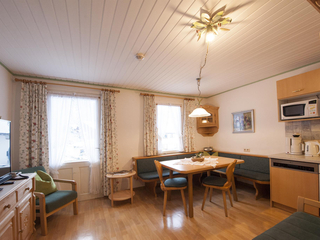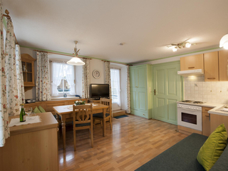 Schöne helle Komfort-Ferienwohnung im Landhaus Stil mit 35 m² für 2 Personen: 1 Doppelzimmer mit Dusche/WC 1 gemütliches Wohnküche mit Sitzecke und Sofa komplett eingerichteter Küchenblock (Backrohr, Mikro, Kaffeemaschine, Toaster usw.) große