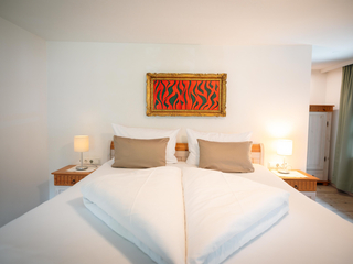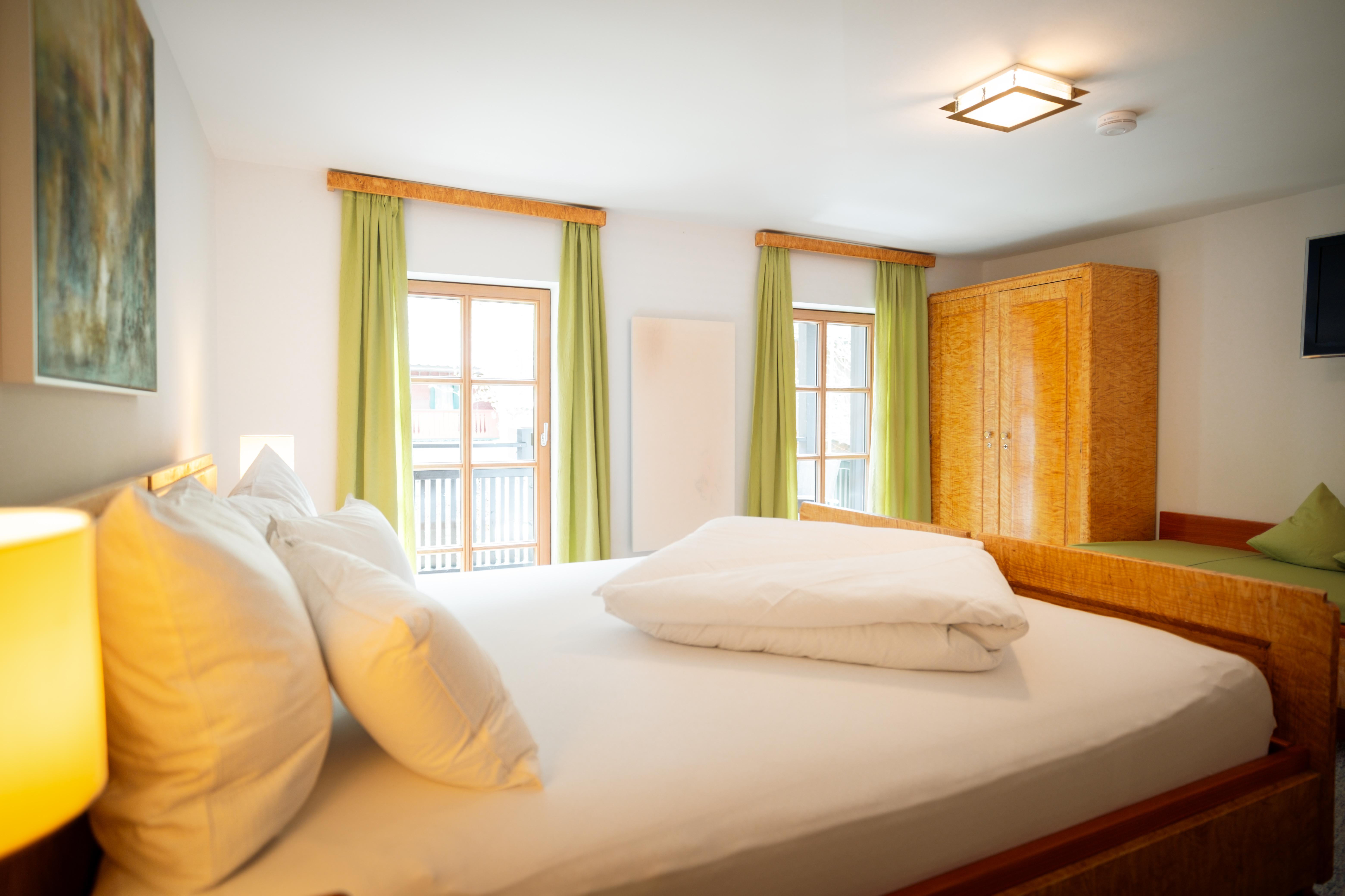 Gemütliches Doppelzimmer mit Dusche/WC, Kabel-TV, Telfon, Fön, Safe und Balkon.