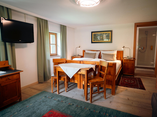 Gemütliches Doppelzimmer mit Dusche/WC, Kabel-TV, Telefon, Fön, Safe und Balkon.