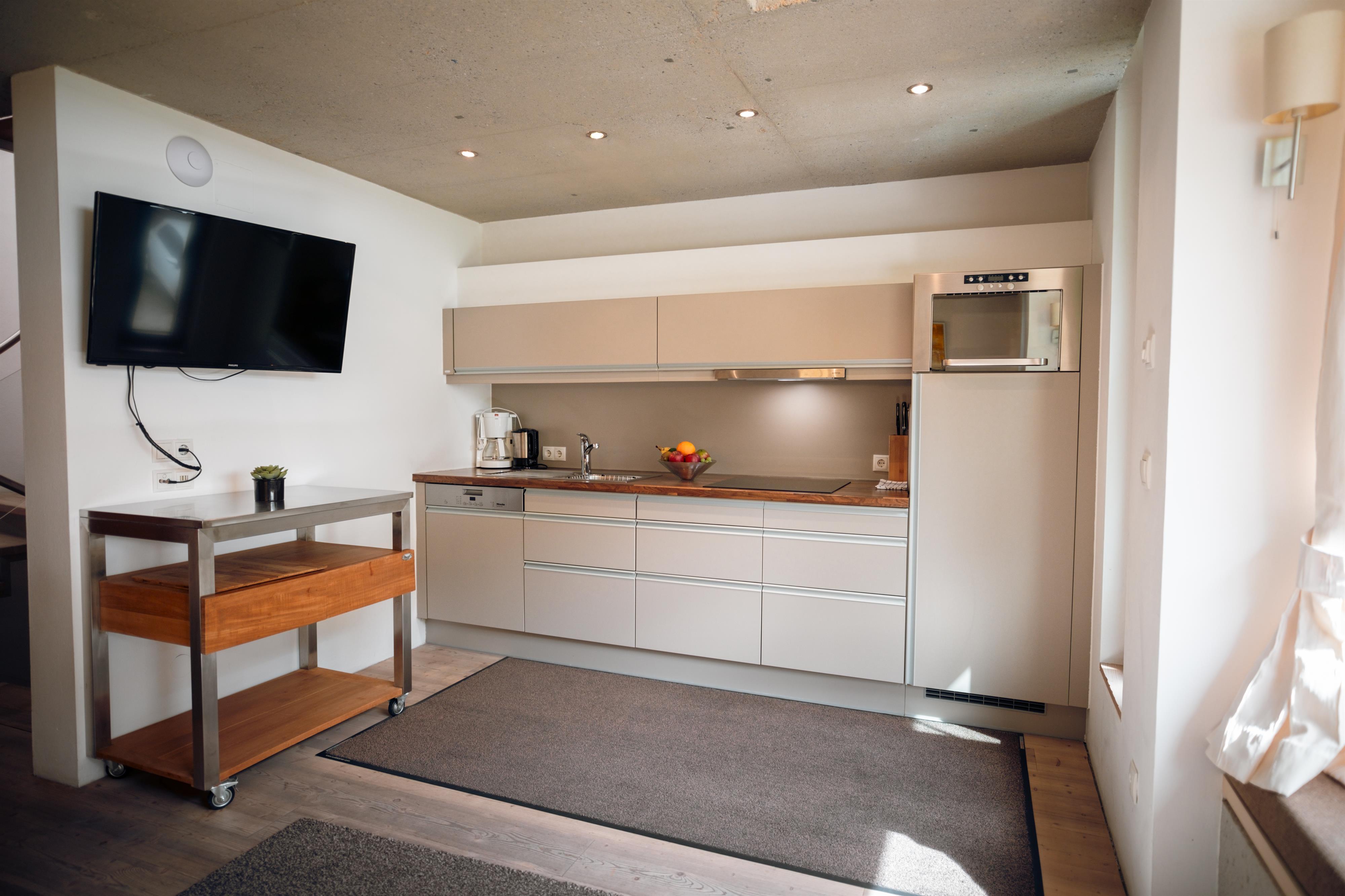 Essplatz mit Ofenecke u. Glaserker, voll ausgestattete Küche. Offener Schlaf-/Wohnbereich mit Ofenecke 2 Schlafräume mit Bad und DU/WC, Kabel-TV, Telefon, Balkon, Brötchenservice