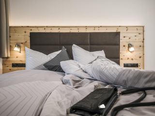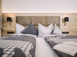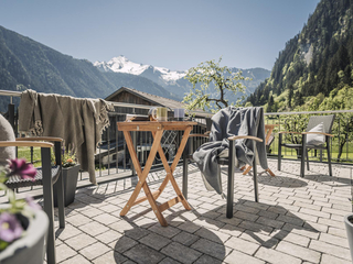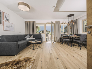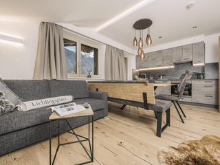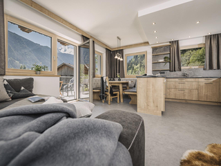 Die neuen Leuhaus Apartments im Haupthaus überzeugen mit moderner Einrichtung und Gemütlichkeit. Geniesst vom Balkon aus die Aussicht auf den Ahornspitz, der in der Abendsonne leuchtet oder wickelt euch in die flauschige Kuscheldecke auf der Couch ein,