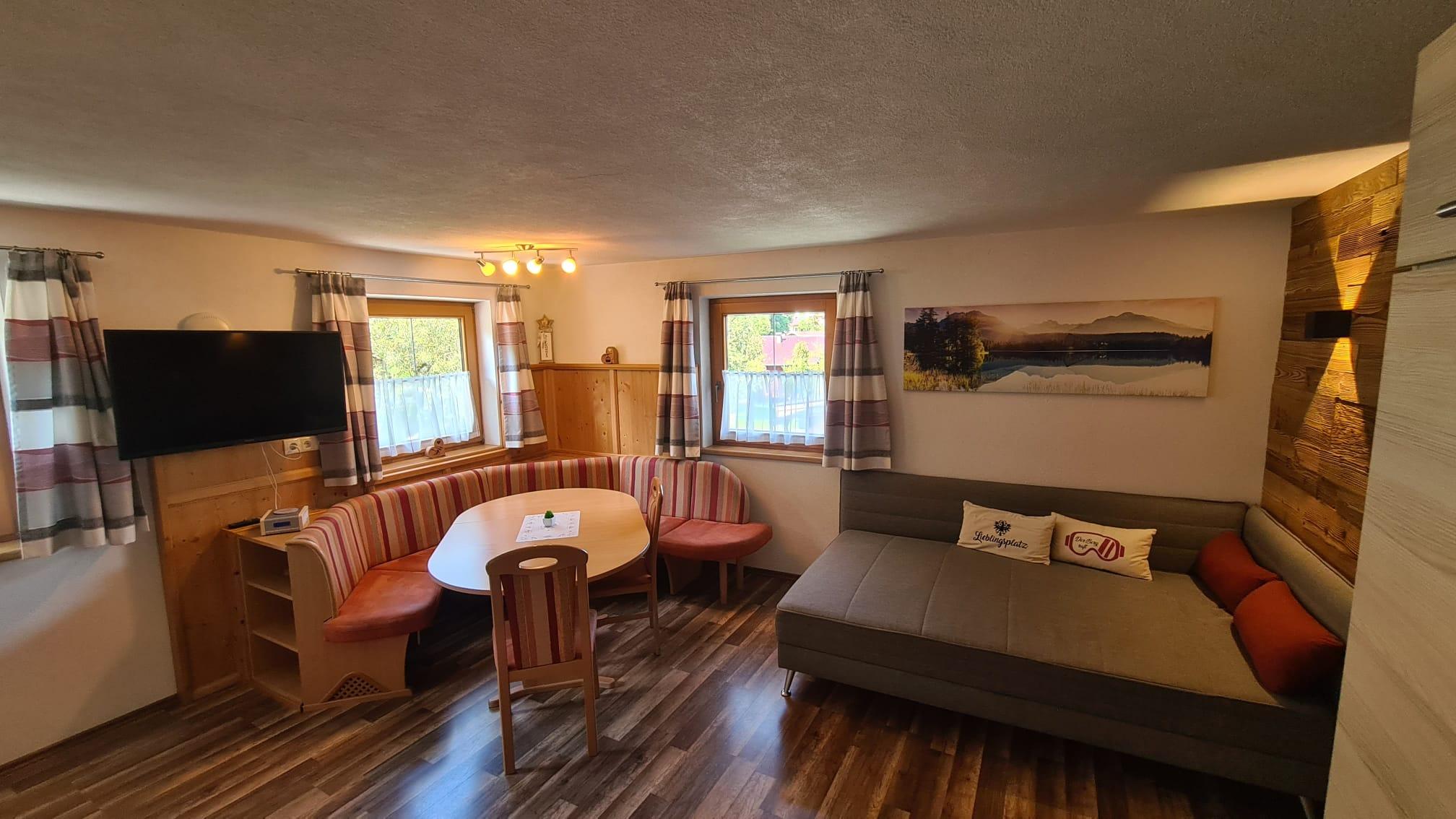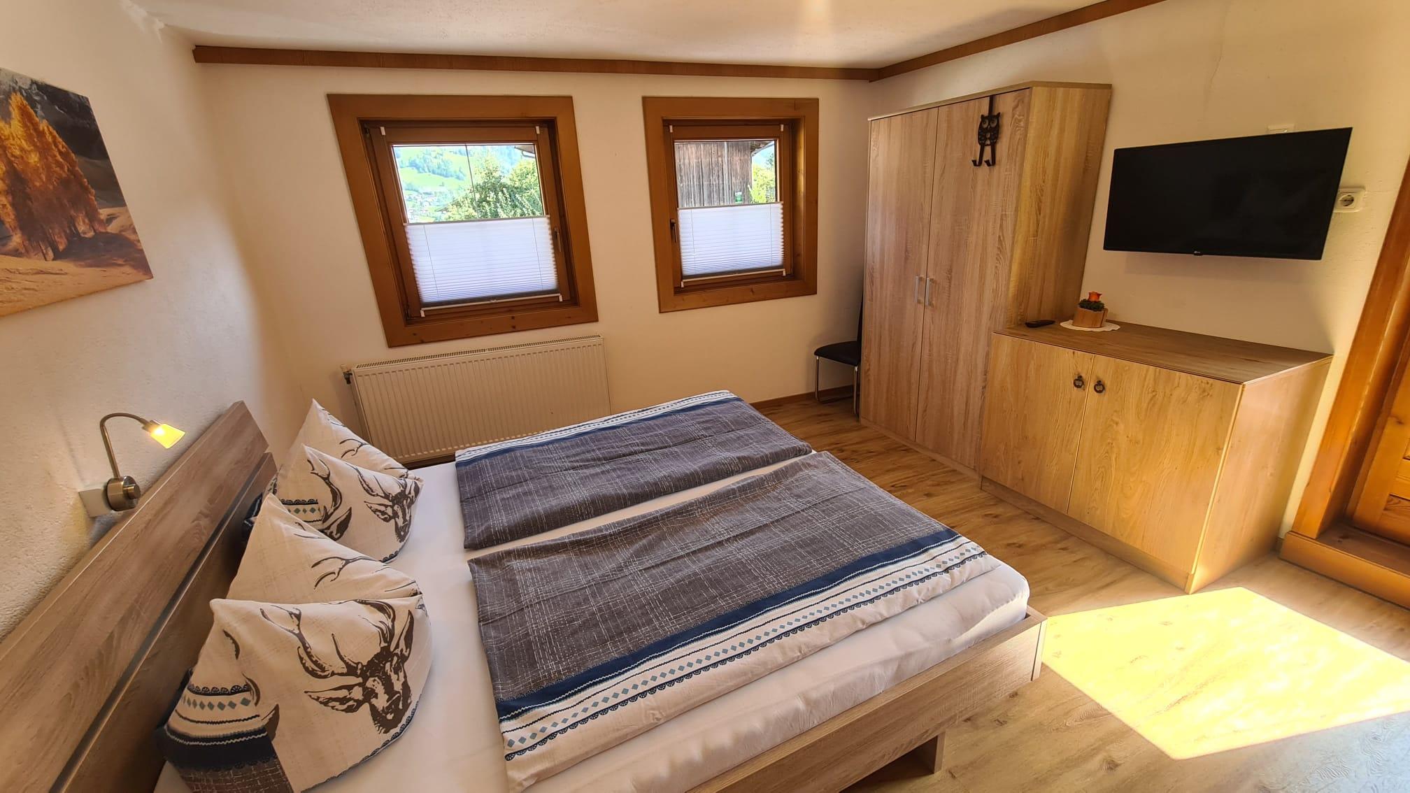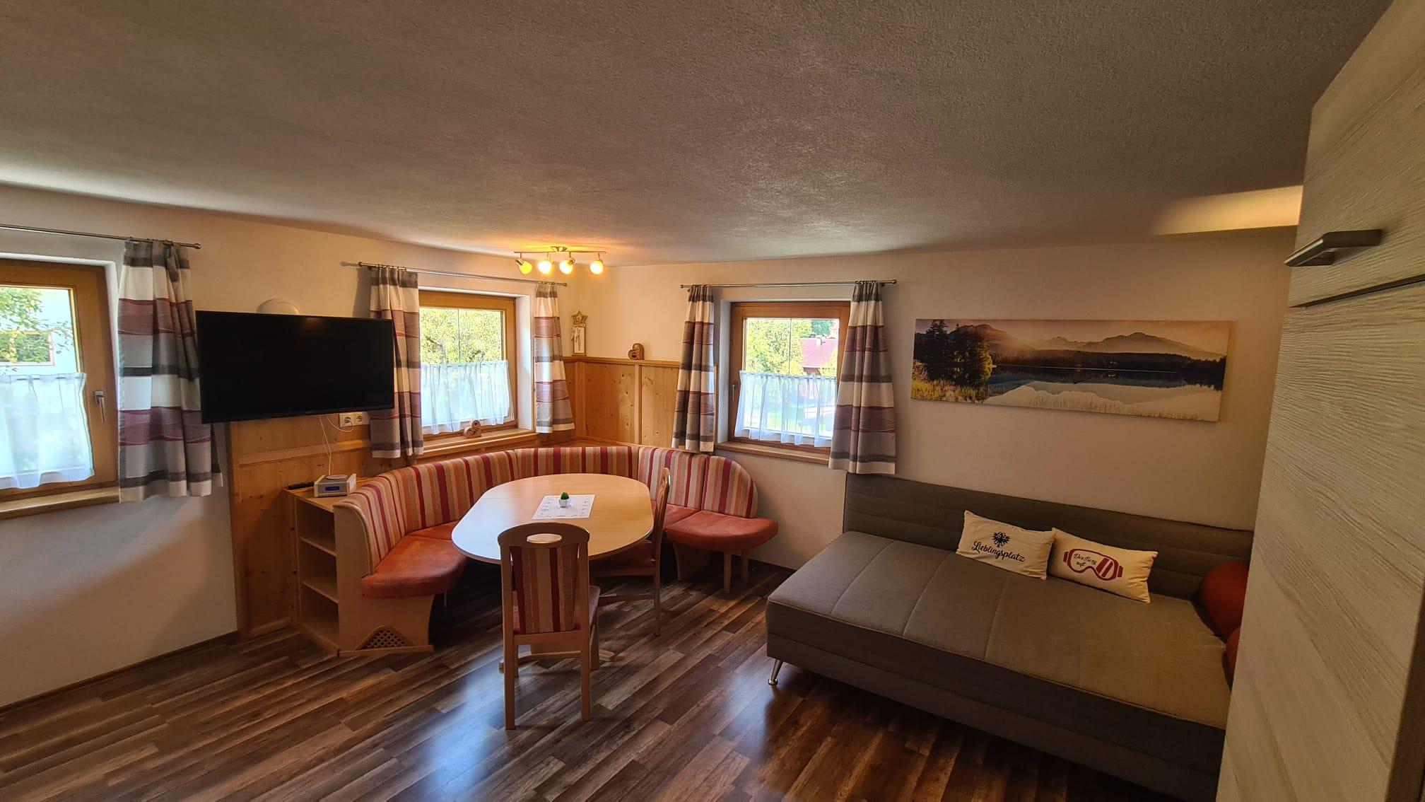 Wir bieten eine gemütliche Ferienwohnung mit Platz für bis zu 5 Personen. die Wohnung ist ausgestattet mit einer geräumigen Wohnküche, einem Dreibettzimmer, einem Doppelbettzimmer, einem Bad sowie einem Balkon, von dem Sie die herrliche Bergwelt genießen