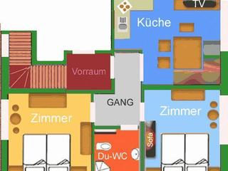 Appartement/Fewo, Dusche, WC, 2 Schlafräume
