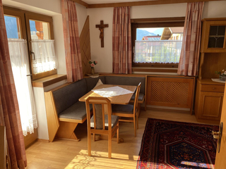 Die Wohnung hat eine gemütliche kleine Küche,voll ausgestattet Herd, 4 Kochplatten und Backofen, Kaffeemaschine, Wasserkocher. Ein Doppelschlafzimmer mit Boxspringbett, Du WC im Zimmer. Stube im Tiroler Stil. Es besteht die Möglichkeit für eine