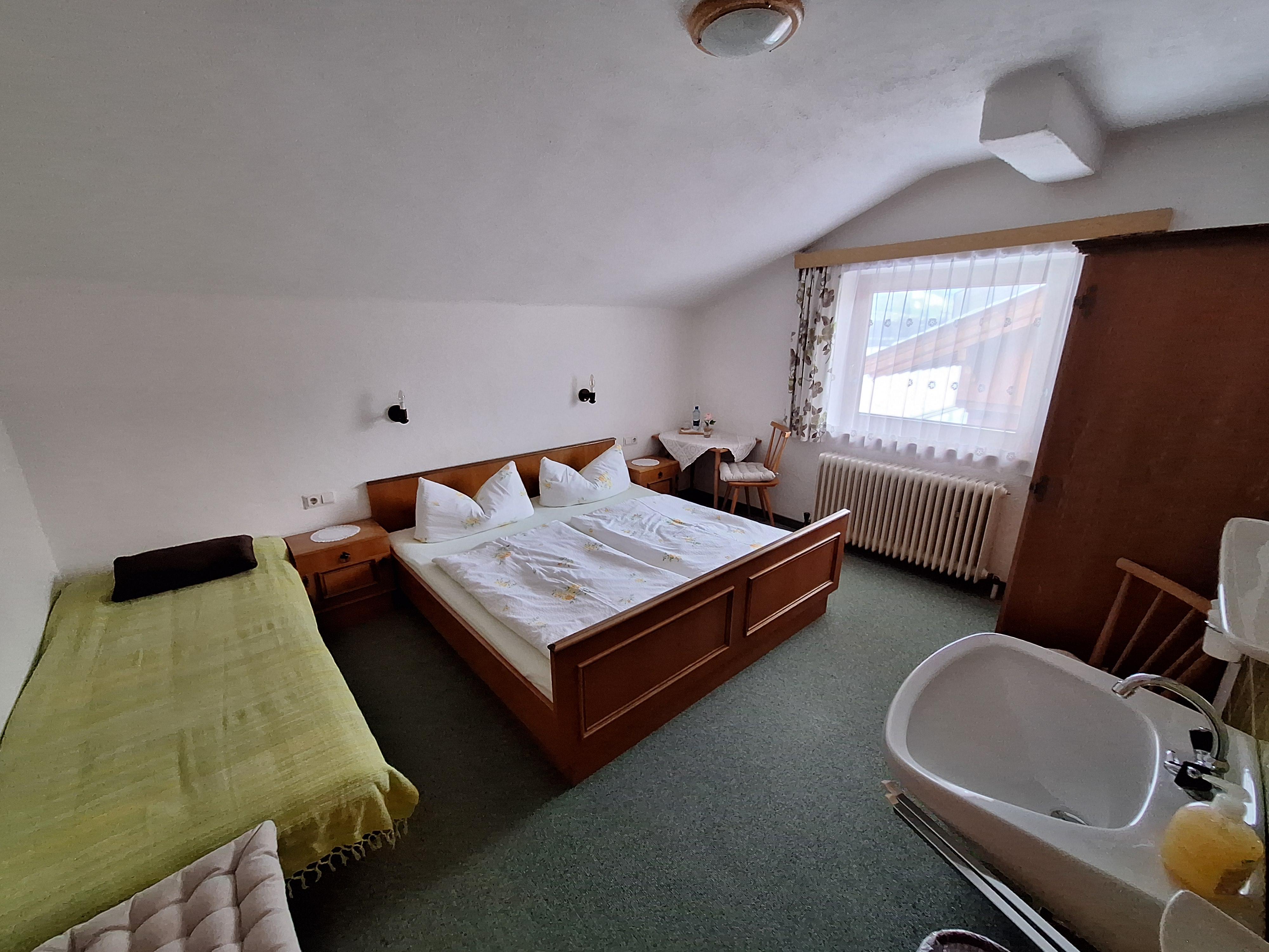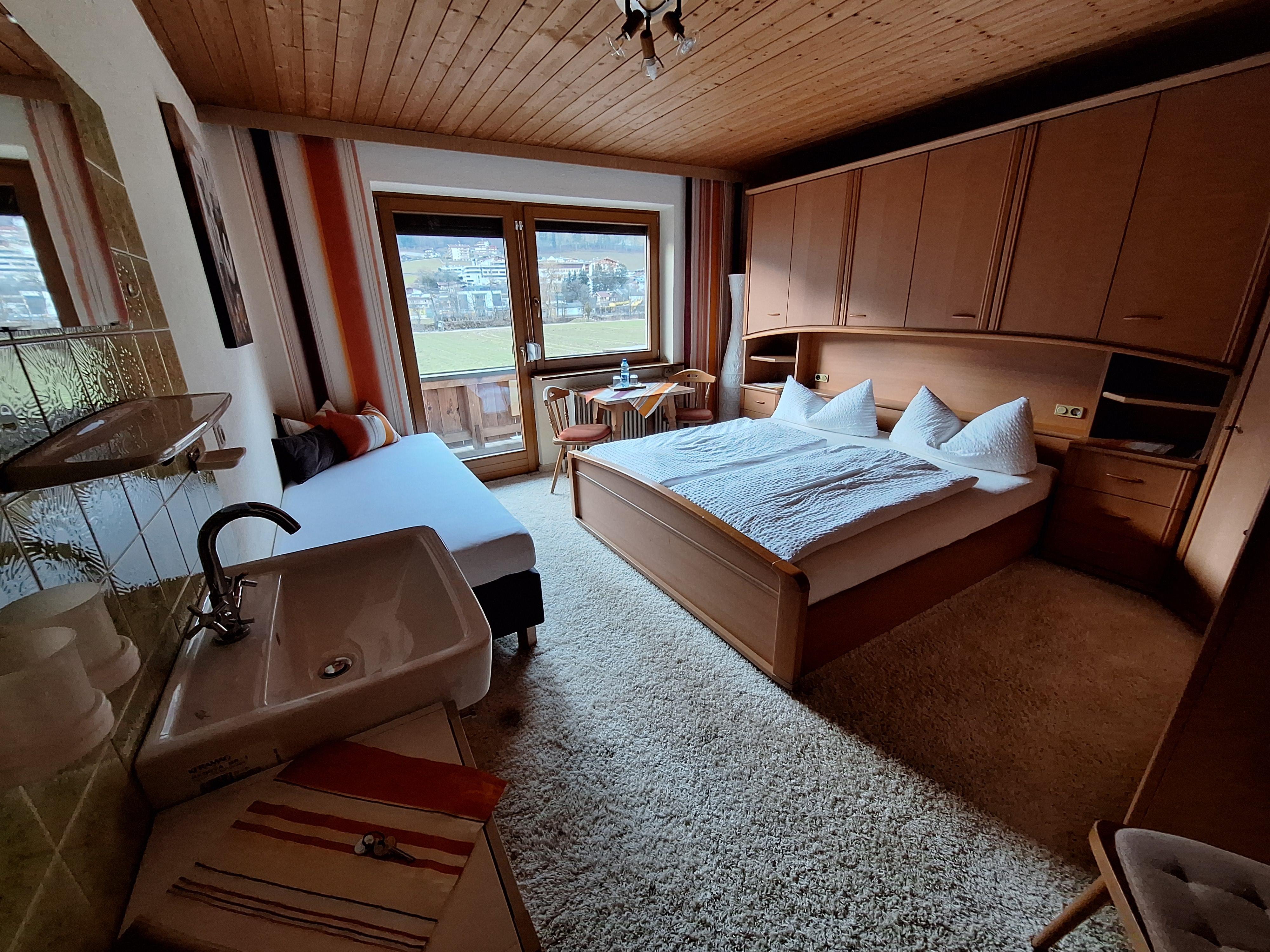 Doppelzimmer für 2- 3 Personen mit fl. k/w Wasser, Etagedusche, Balkon