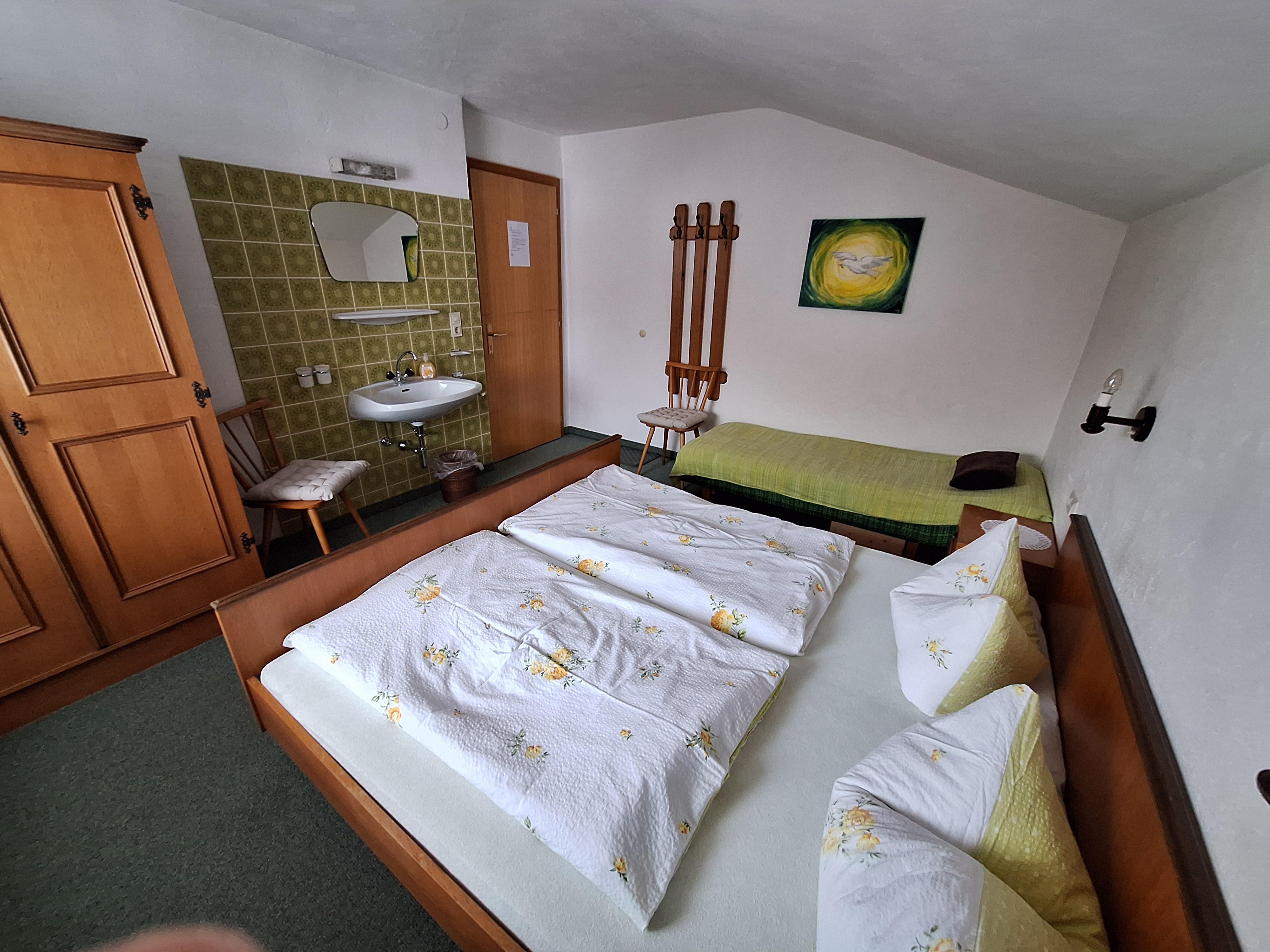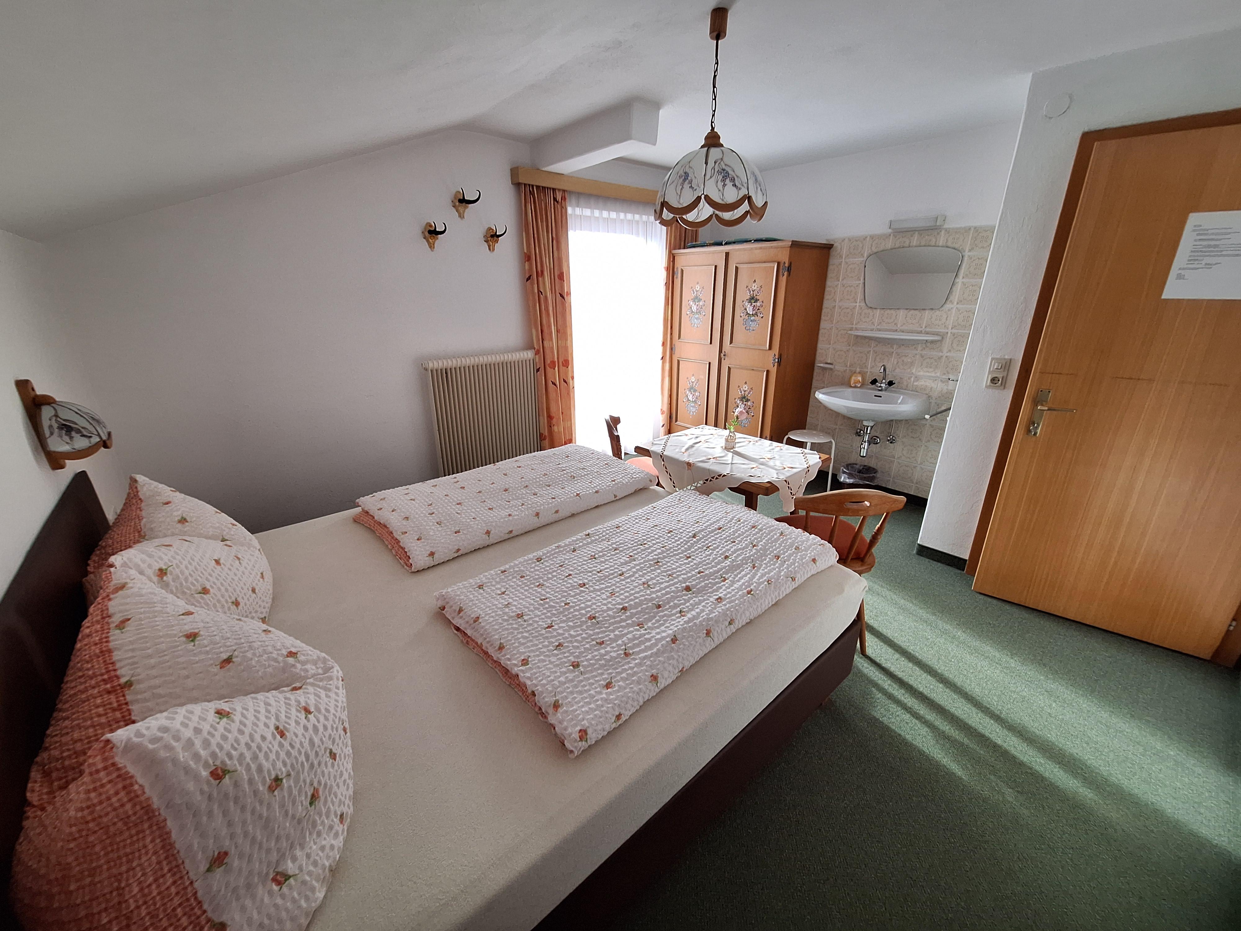Doppelzimmer mit Dusche, Etagen WC, Bakon Zimmer kann auf Anfrage auch für 1 Person gebucht werden
